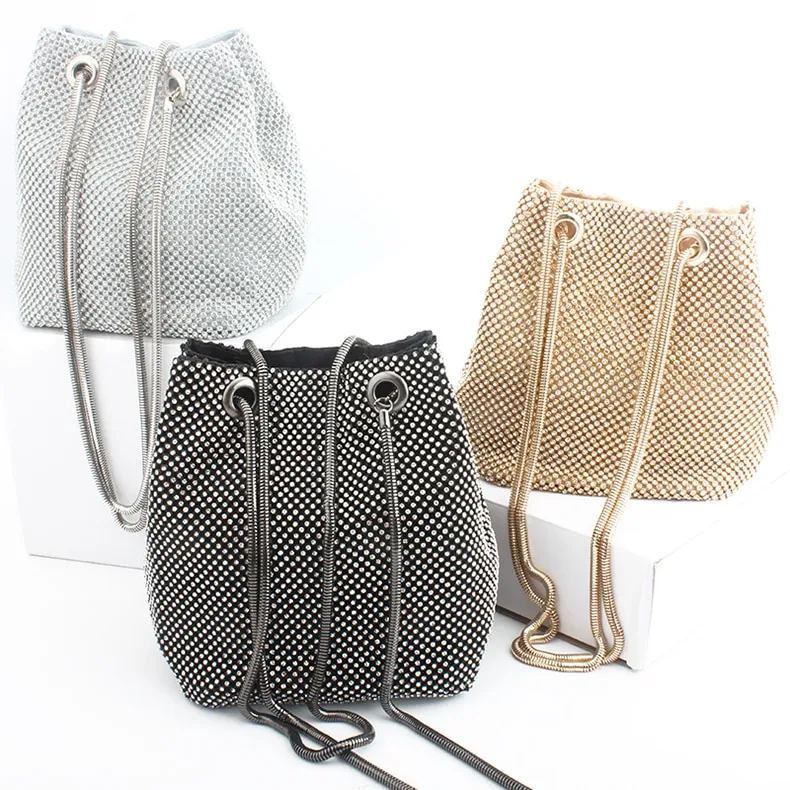 Women Crystal Diamond Clutch Bags String Satin Crossbody Bag Glitter Evening Bags Gold Clutch Party Purse Woman Handbag