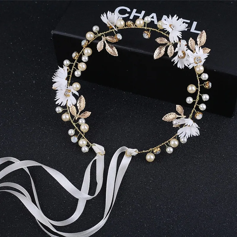 Women Flower Headband With Ribbon Wreath Wedding Party Ladies Girls Garlands Floral Crown Hairband NIN668