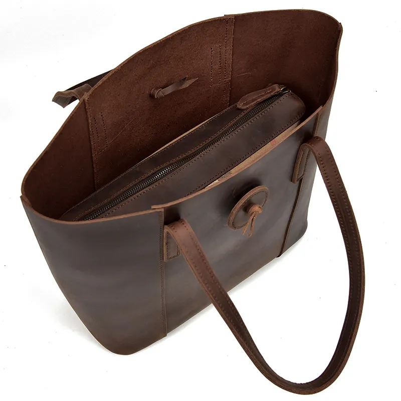 Women Genuine Leather Handbag Crazy Horse Leather Clutch Tote Bags Designer Simple Retro Big Shopping Bag