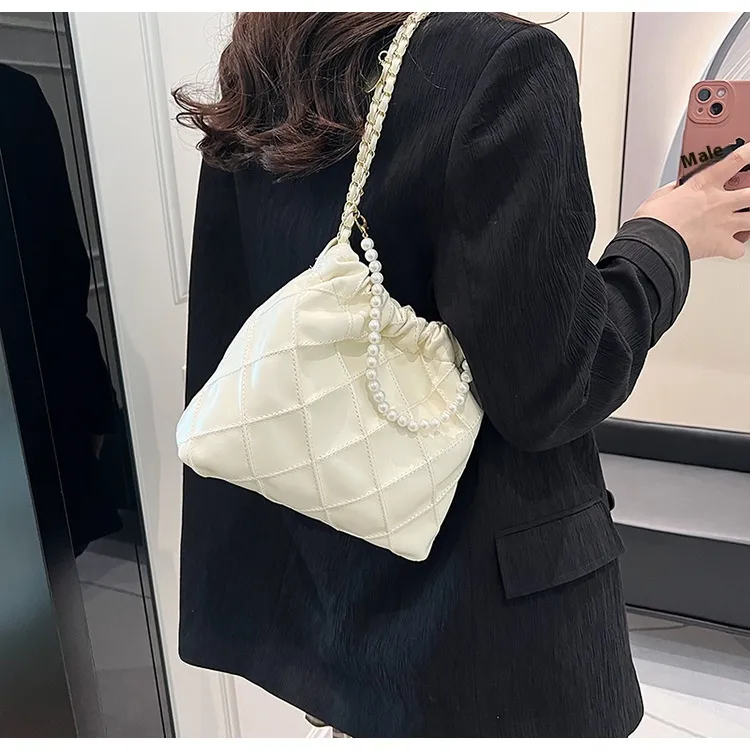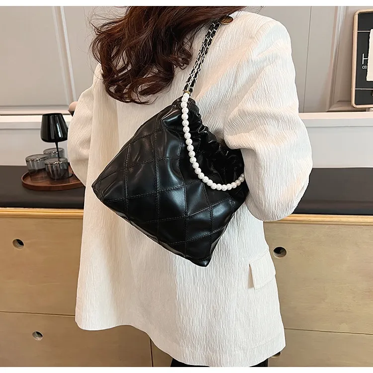 Women's Bag Popular Niche Texture Garbage Rhombus PU Hand