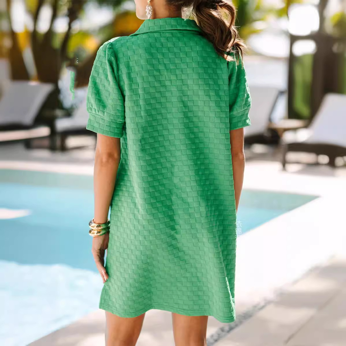 Women's Bubble Plaid Fashion Elegant Loose Short Sleeve Dress