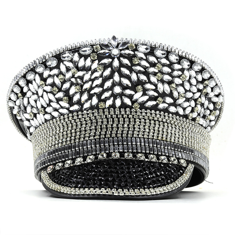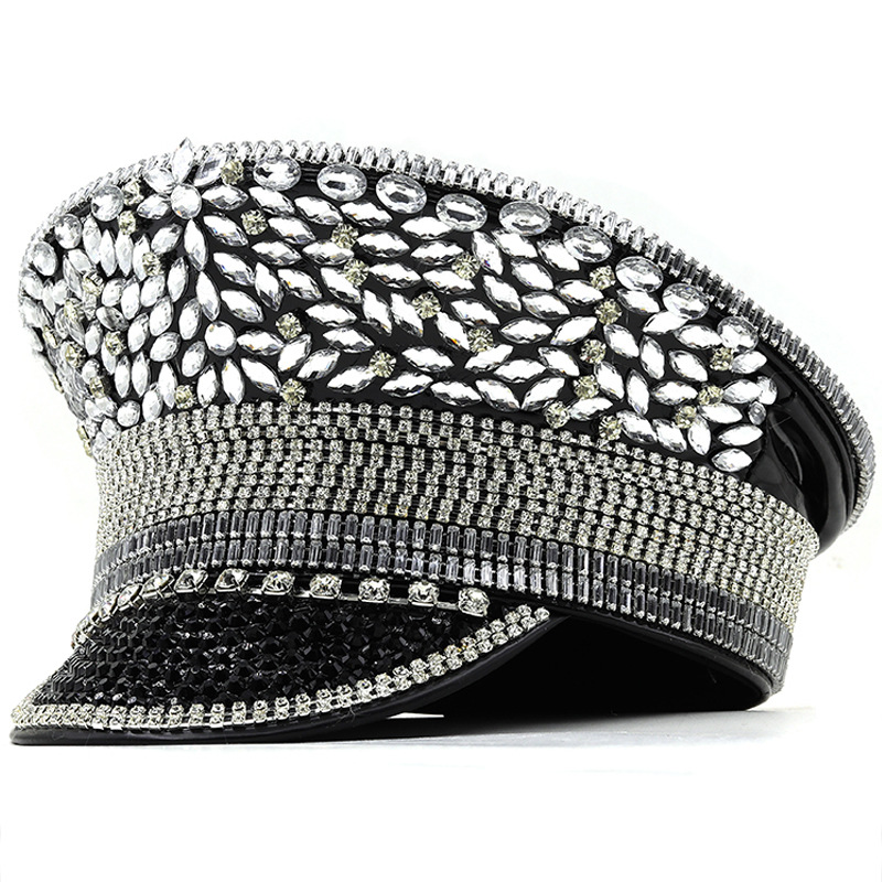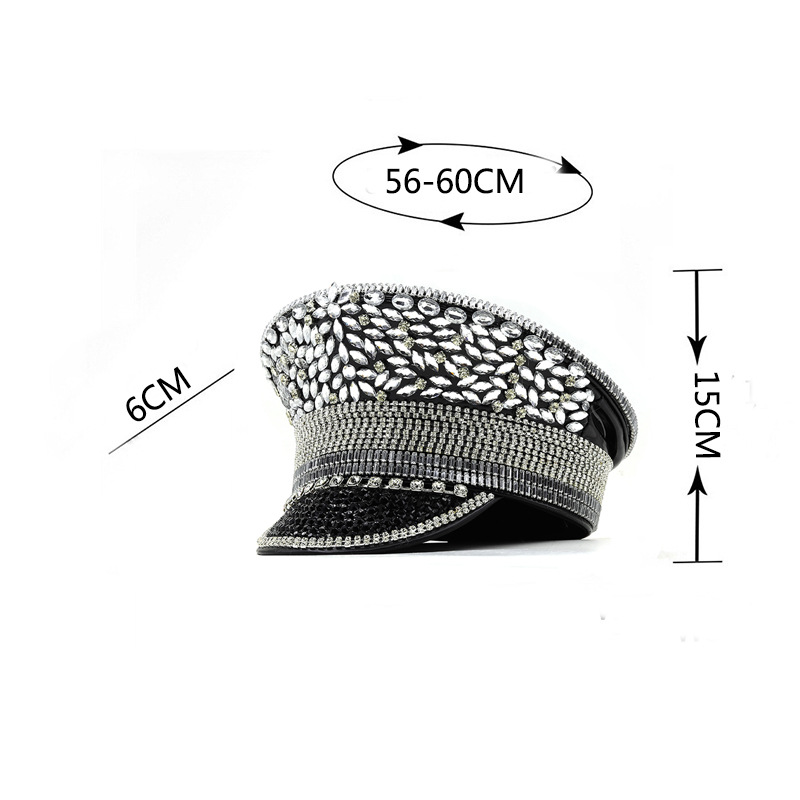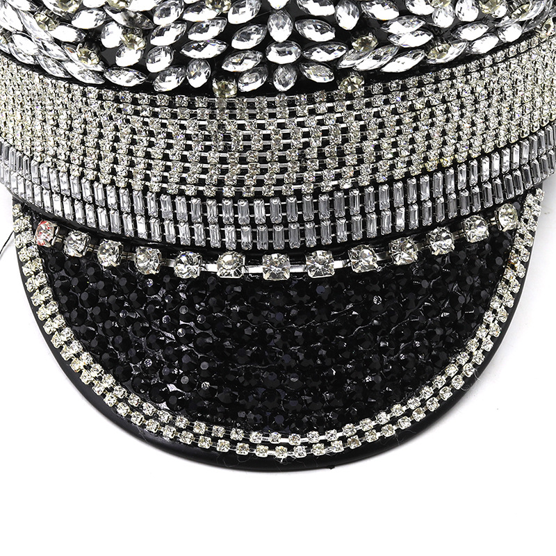 Women's Diamond Wedding Hat Silver Sequined Diamonds Photography Hat Peaked Cap Flat-top Hat Performance Cap