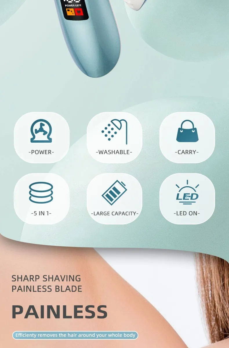 Women's Electric Depilator Private Parts Armpit Hair Trimming Multifunctional Digital Display Waterproof Shaving