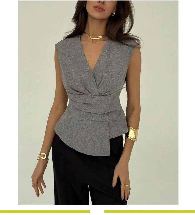 The Women’s Elegance Sleeveless Waist-tight Pullover Top is a chic, versatile, and flattering addition to any wardrobe. Designed to enhance your natural shape and provide comfort throughout the day, this top offers a sophisticated look that can easily transition from day to night. Whether you're looking to add elegance to your casual look or elevate your formal outfit, this top is the perfect choice.