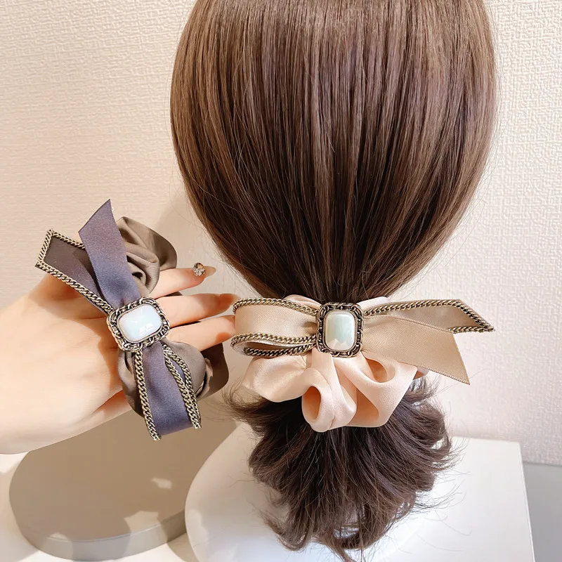 Women's Fabric Bow Knot Chain Hair Tie Temperament Headwear