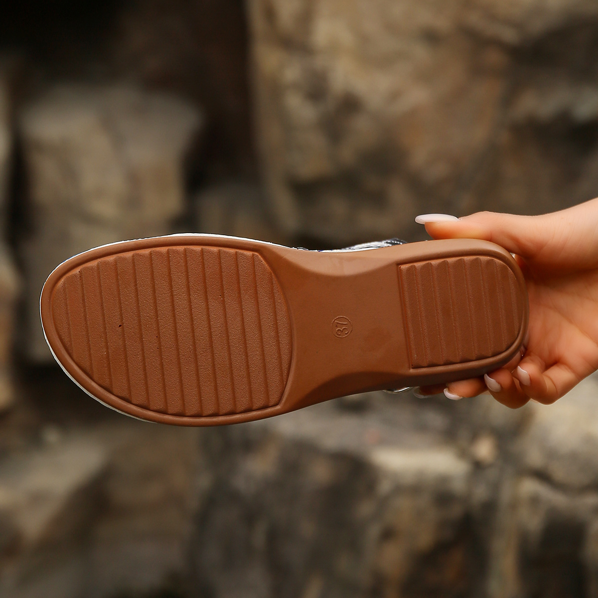 Wedge Heel The wedge heel offers the perfect balance between height and comfort. It provides a slight lift, enhancing your posture without compromising on comfort, making these sandals ideal for extended wear.