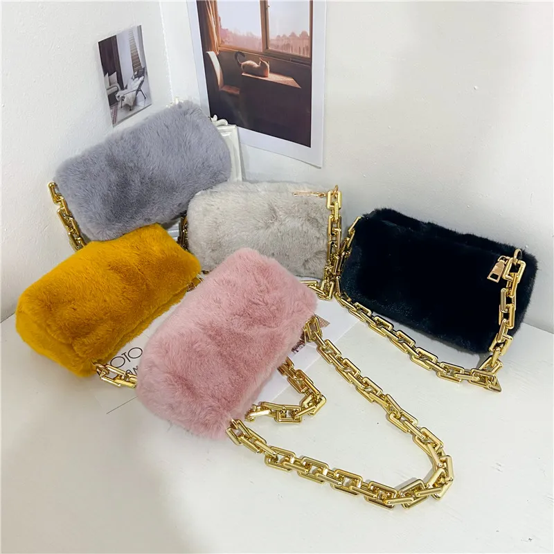 Women's Fashion Chain Shoulder Plush Underarm Bag