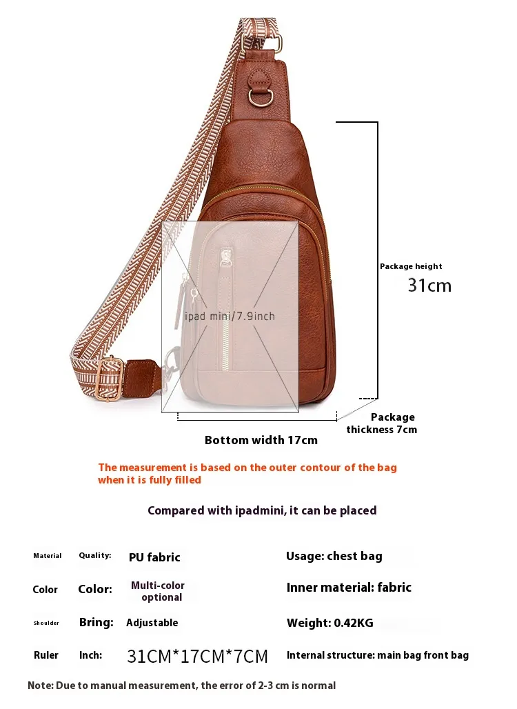The Women's Fashion Chest Bag is a sleek, lightweight, and functional accessory designed for everyday use. Whether you're commuting, shopping, traveling, or attending casual outings, this exquisite small messenger bag is the perfect blend of fashion and convenience.