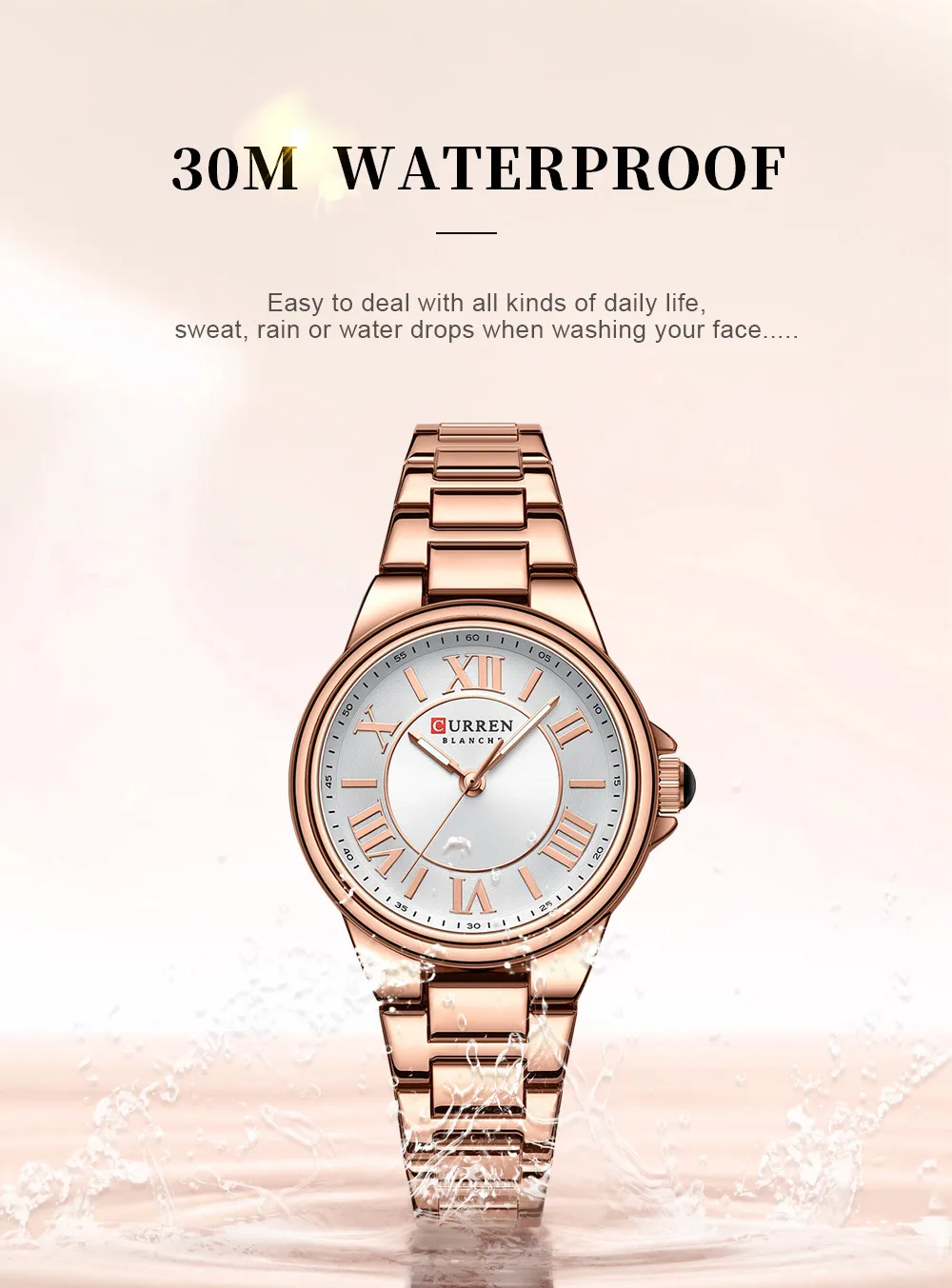 With water resistance up to 30 meters, the watch withstands splashes, rain, and light exposure to water, making it suitable for daily activities.
