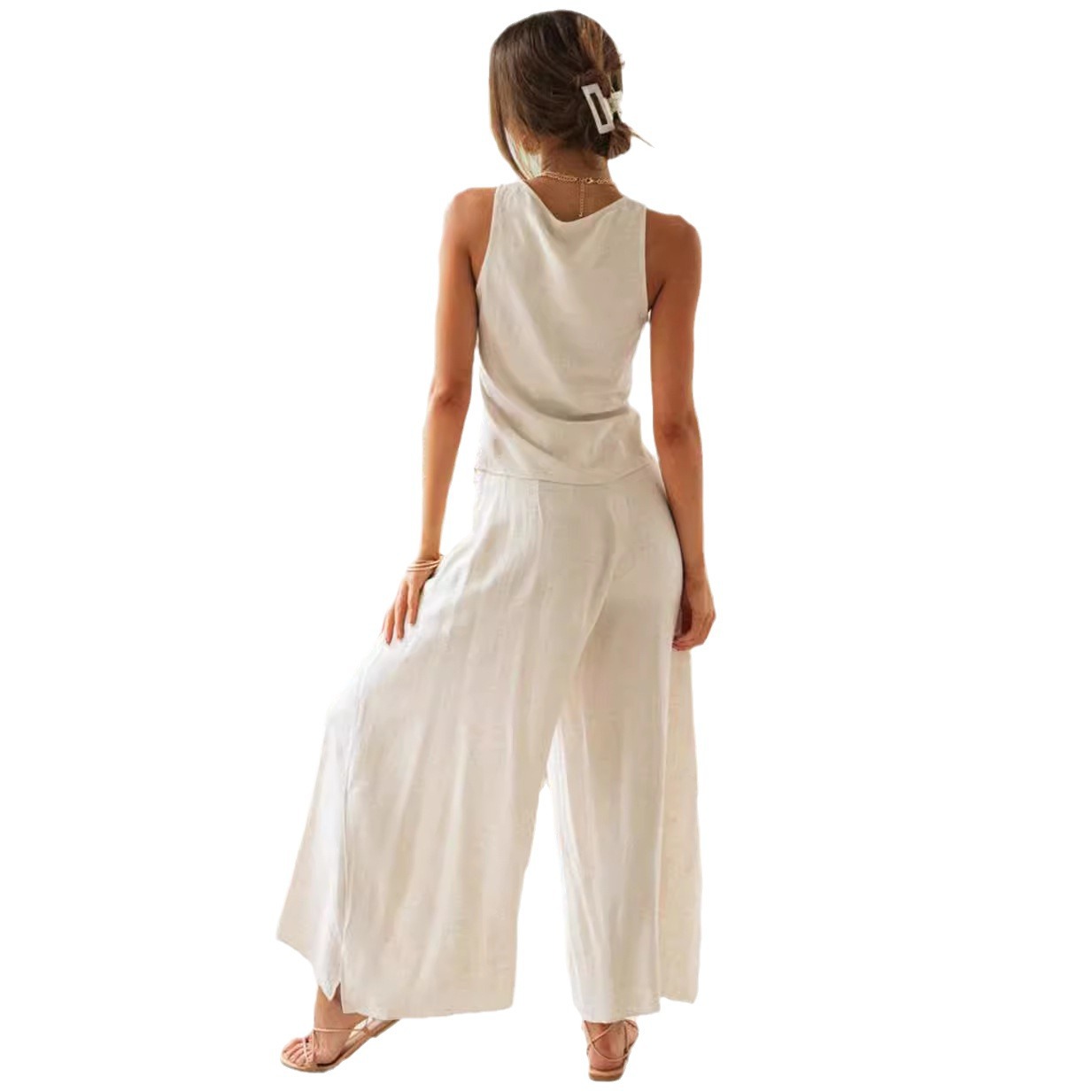Women's Fashion Drawstring Short Sleeve Top Wide Leg Suit