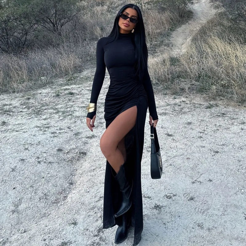 Women's Fashion Slim Fit Slit Pleated Dress – Elegant and Stylish for Every Occasion