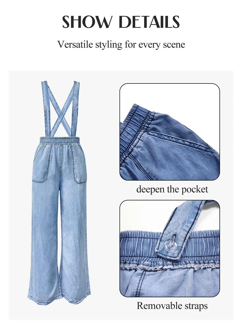 The Women's High-Waist Jeans with Convertible Wide-Leg Full-Length Design and 3-in-1 Adjustable Hem are the perfect combination of style, comfort, and sustainability. Made from breathable Tencel Lyocell fabric, these jeans keep you cool and comfortable while offering a flattering fit and versatile styling options. Whether you're heading out for a casual day or dressing up for an evening out, these jeans are the ideal addition to your wardrobe, providing a chic, eco-friendly, and comfortable option for any occasion.