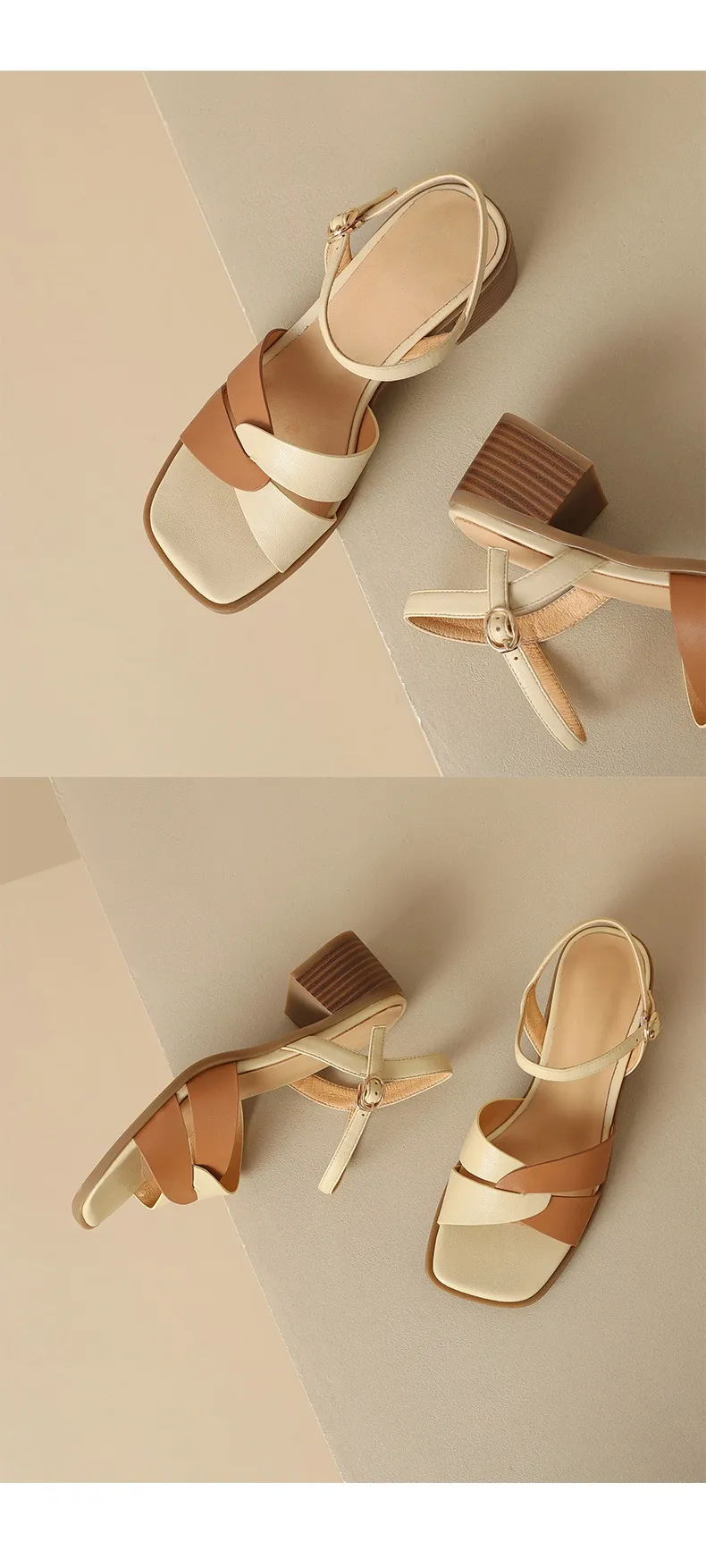 Why Choose the Women's Hollow Color Matching Chunky Heel Sandals with Buckle?