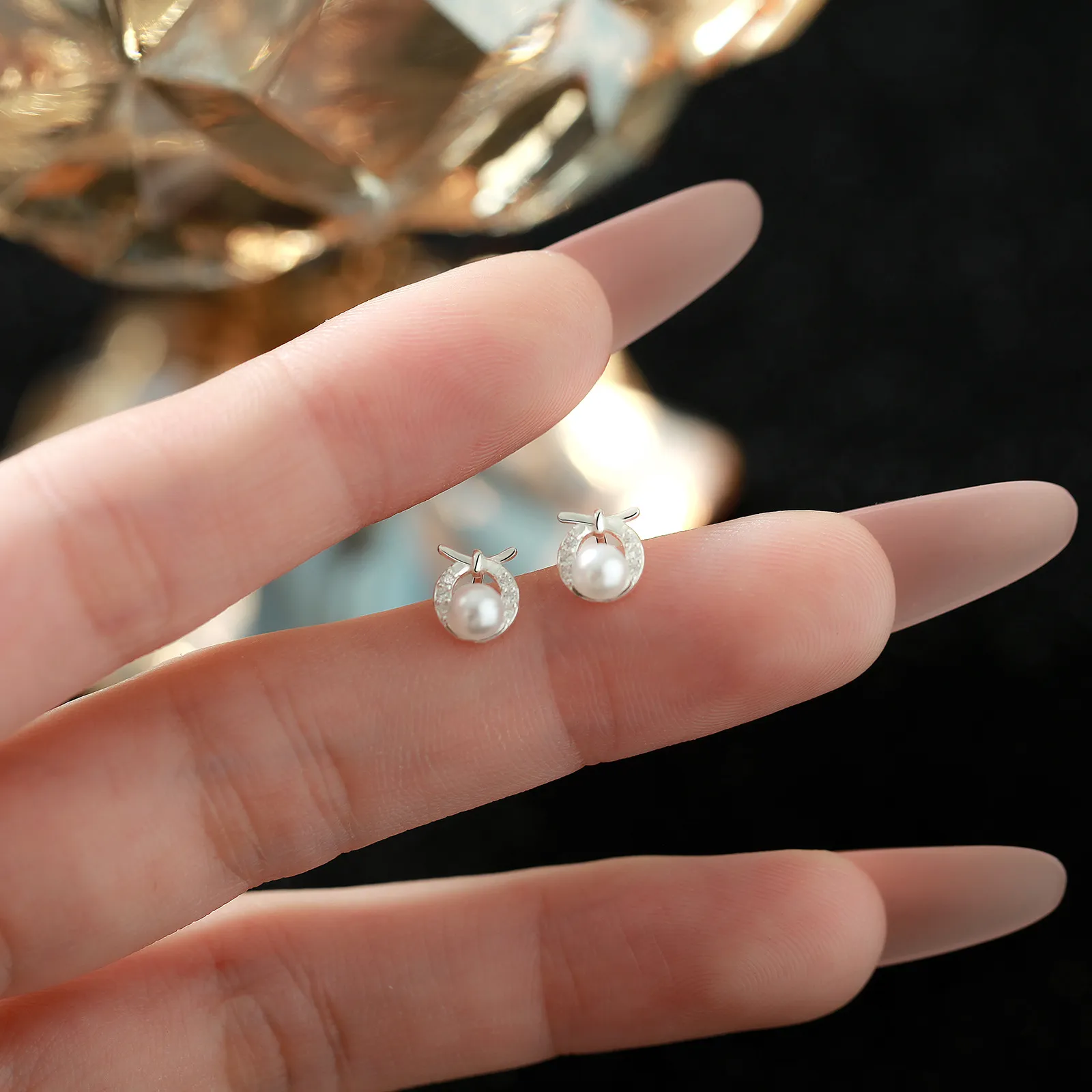 Women's Hollow S999 Sterling Silver Round Bow Stud Earrings
