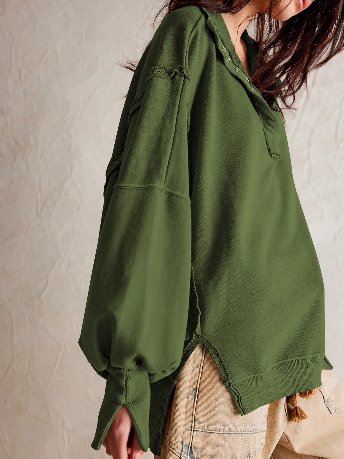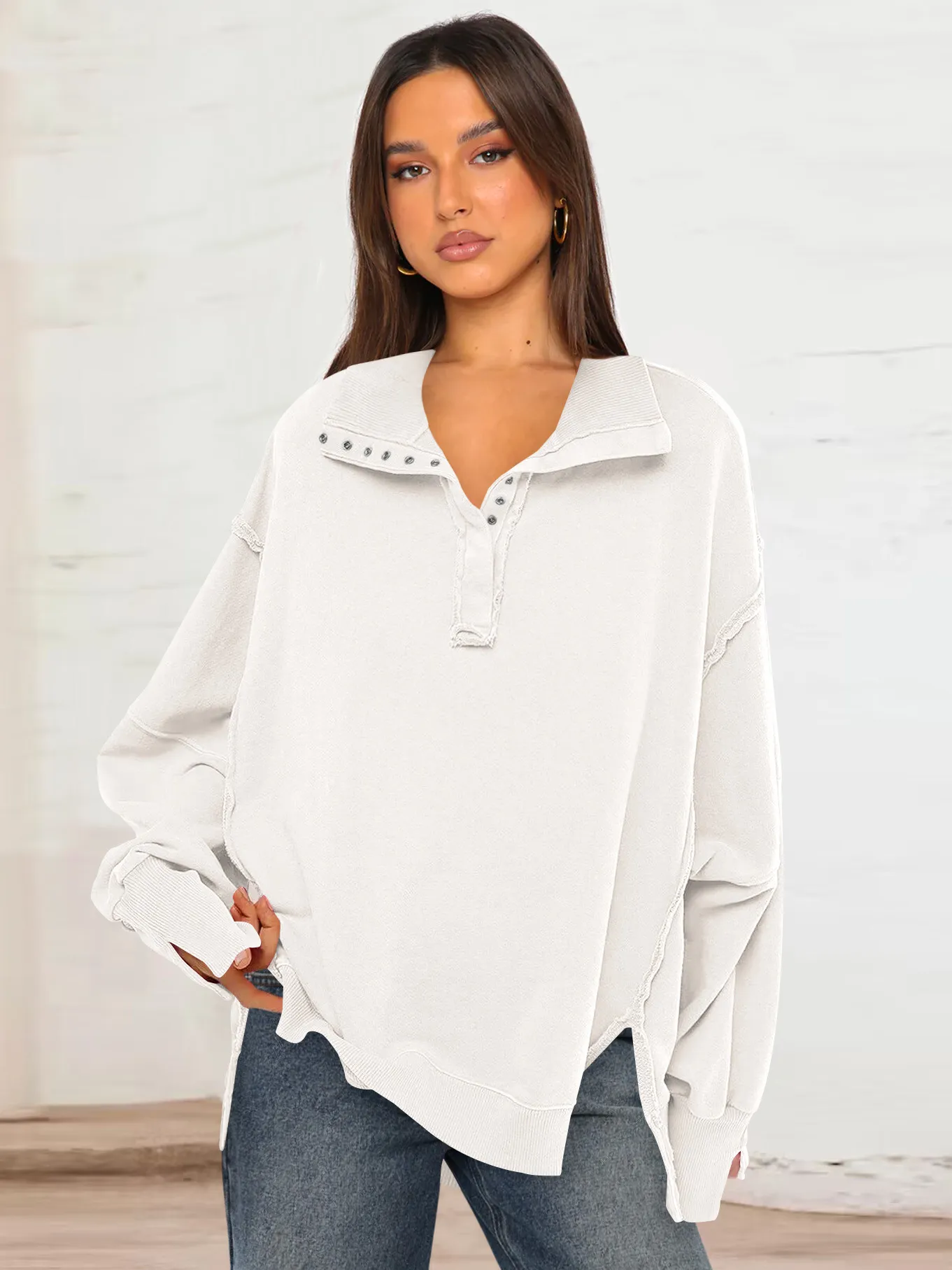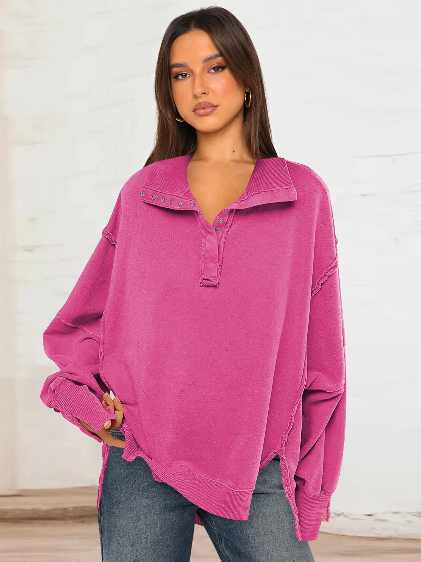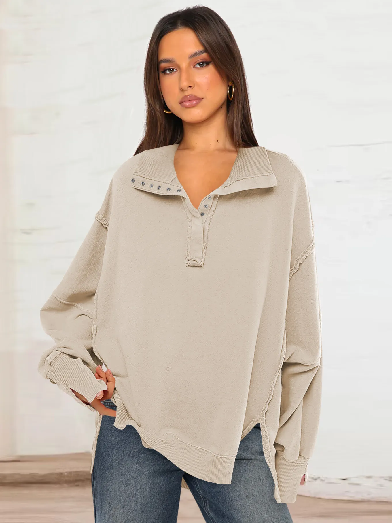 Women's Lantern Sleeve Decorative Moulding Split Lapel Sweater
