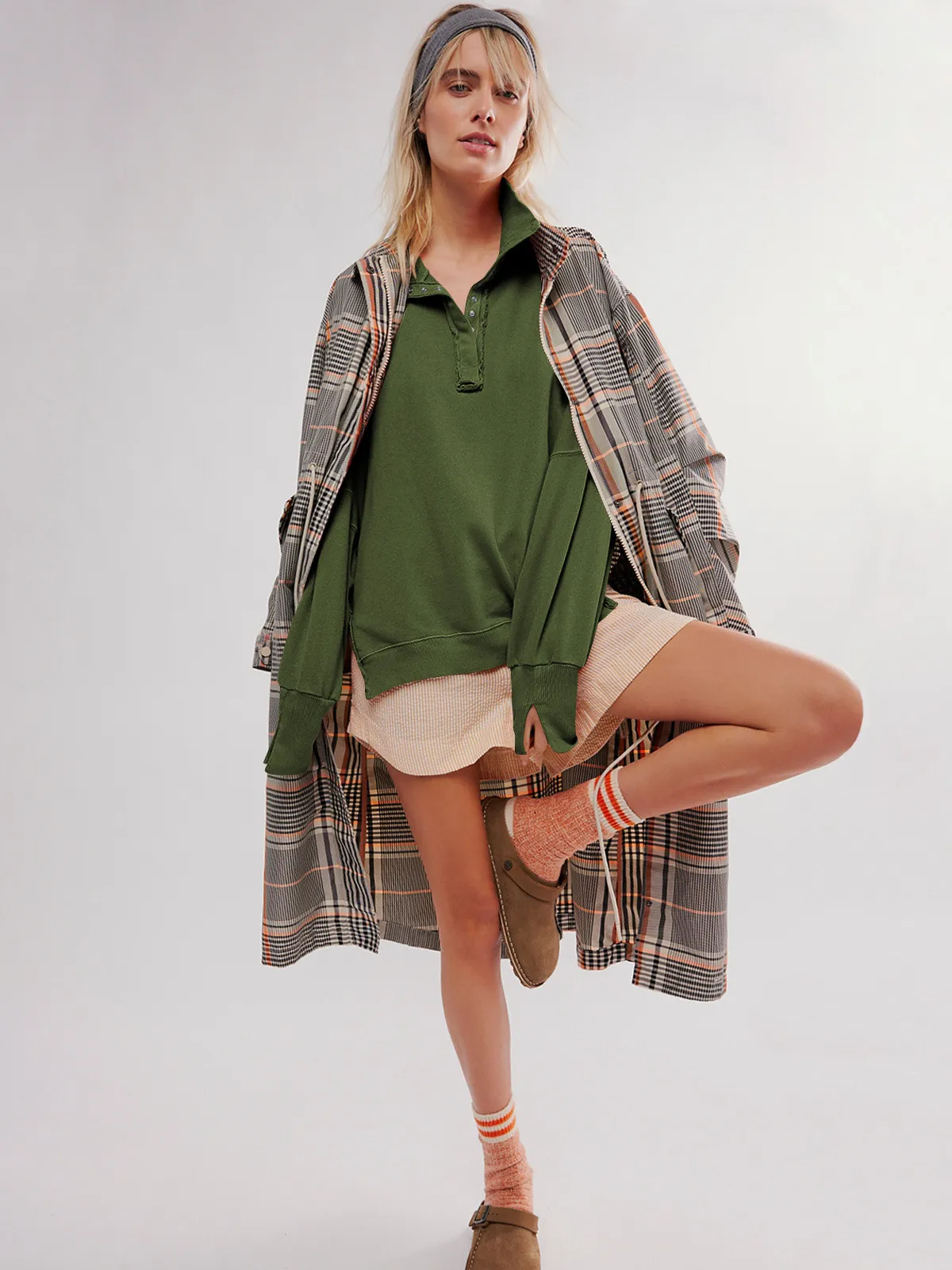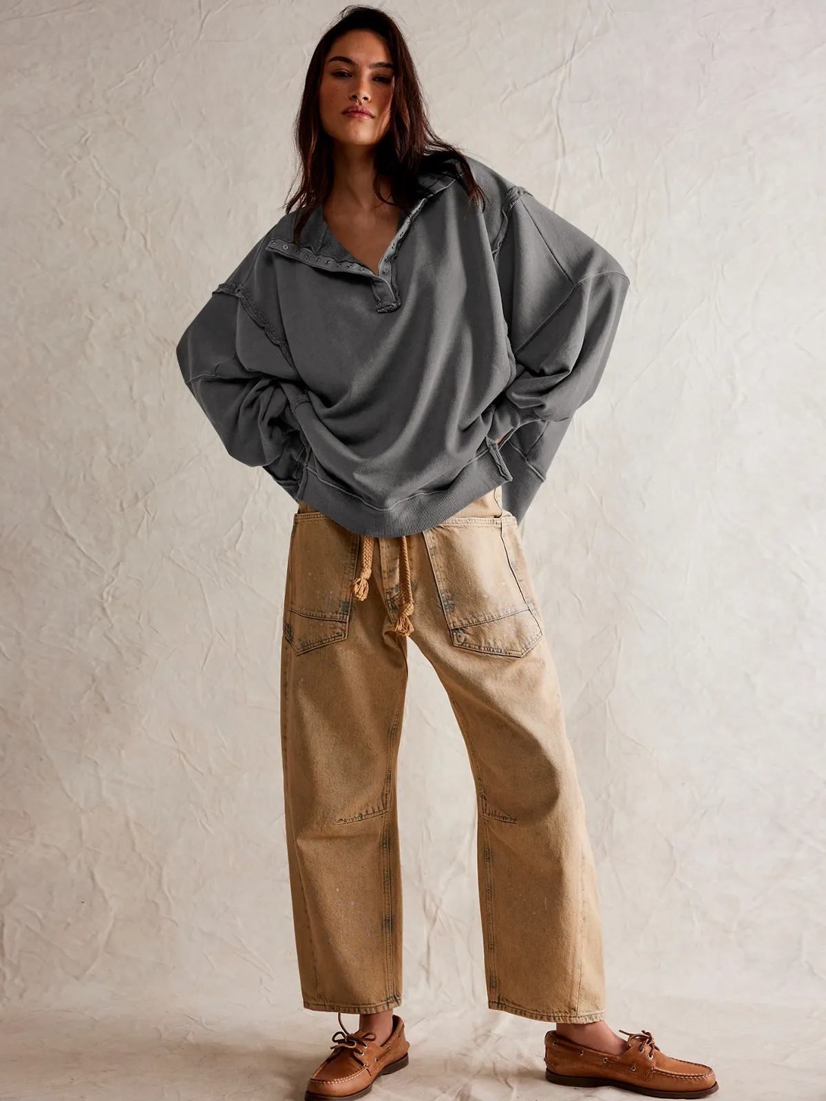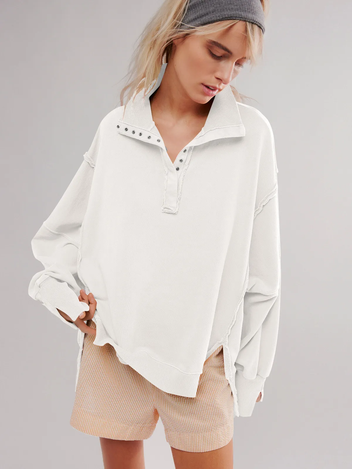 Women's Lantern Sleeve Decorative Moulding Split Lapel Sweater
