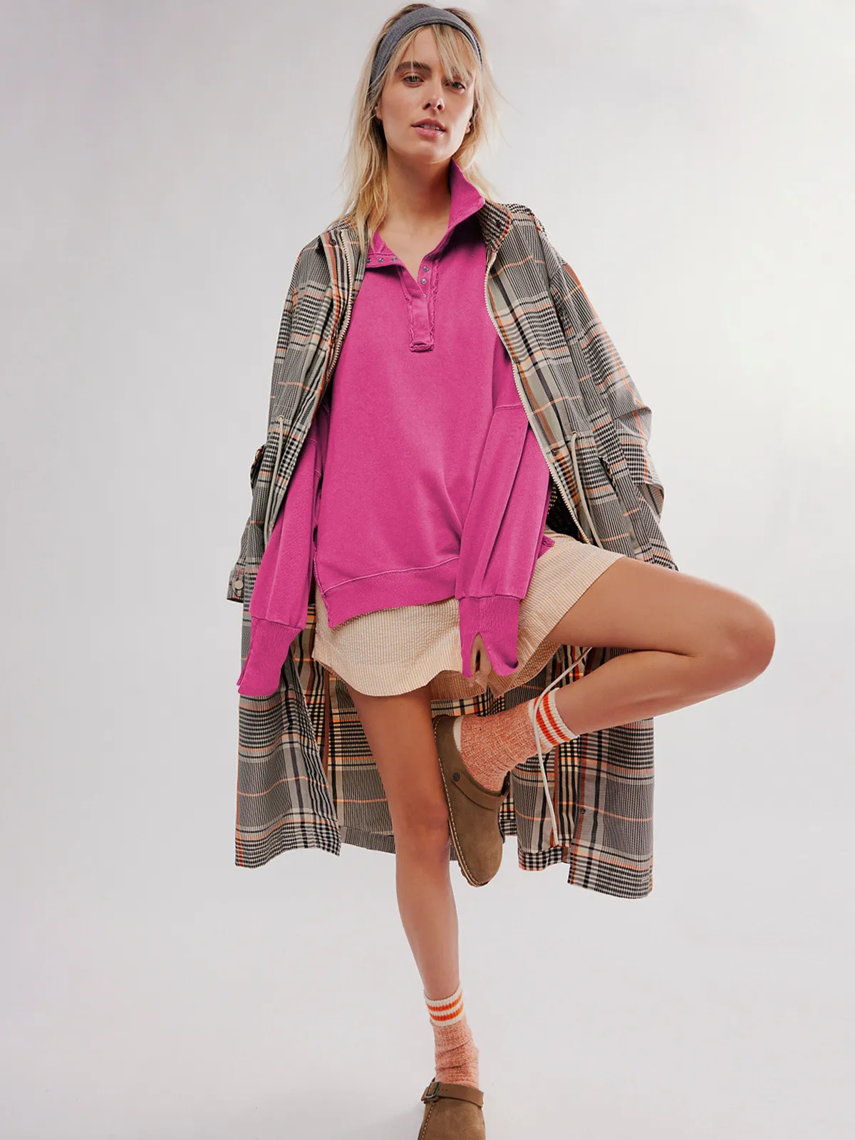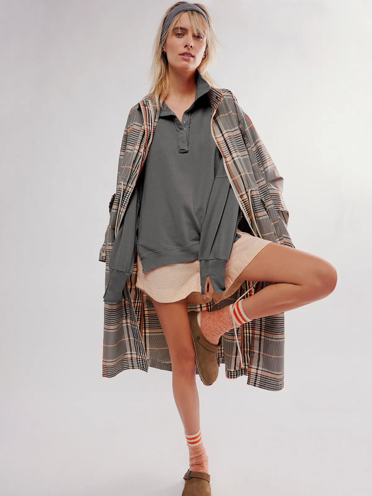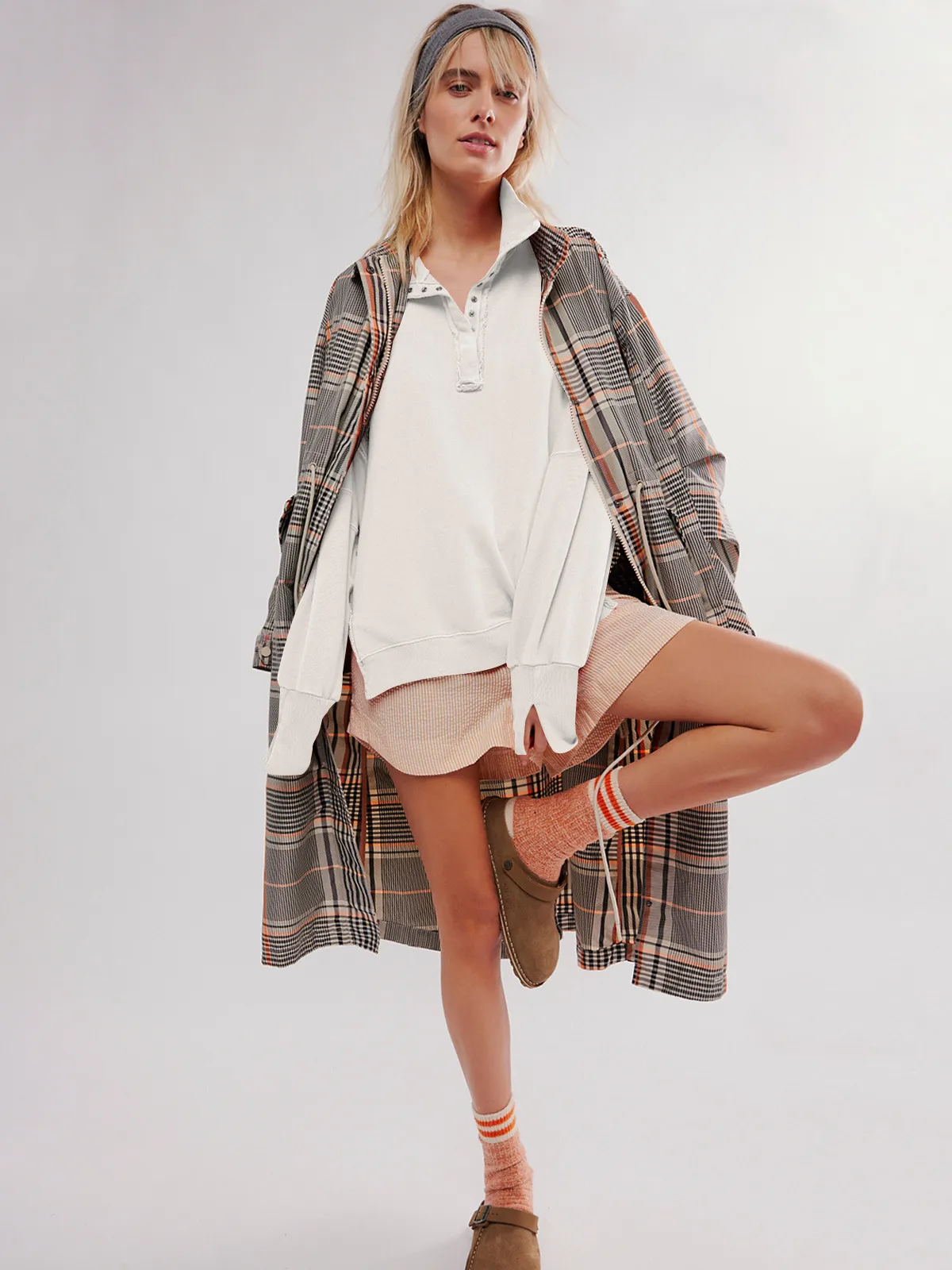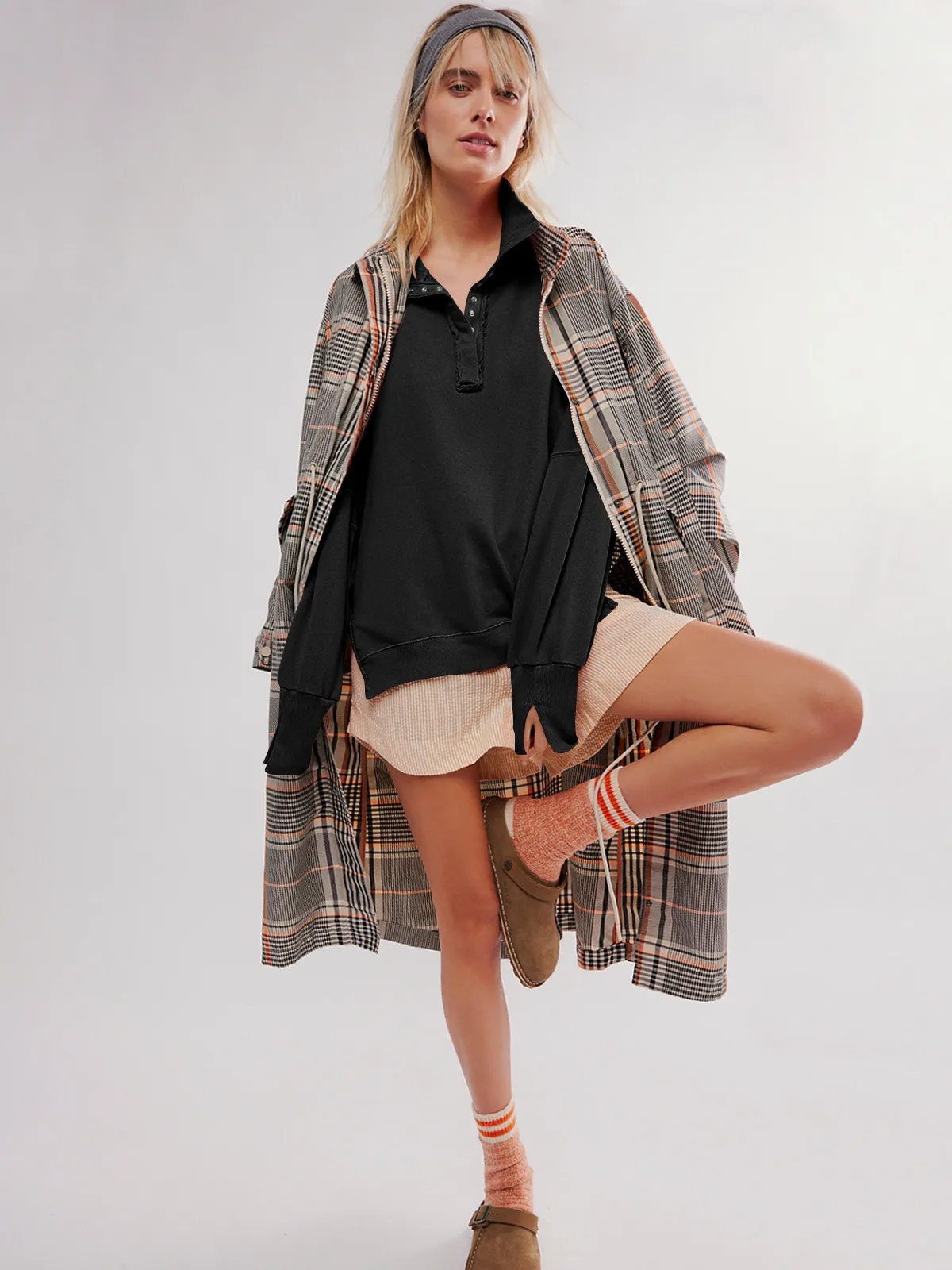 Women's Lantern Sleeve Decorative Moulding Split Lapel Sweater