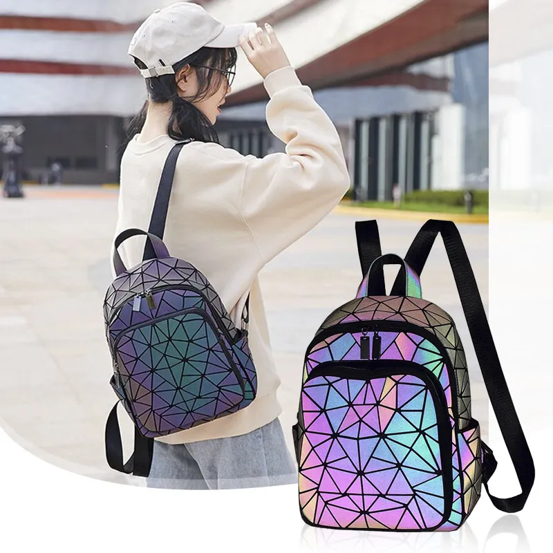 H1: Women's Laser Rhombic Geometry Schoolbag – A Perfect Blend of Modern Design and Practicality