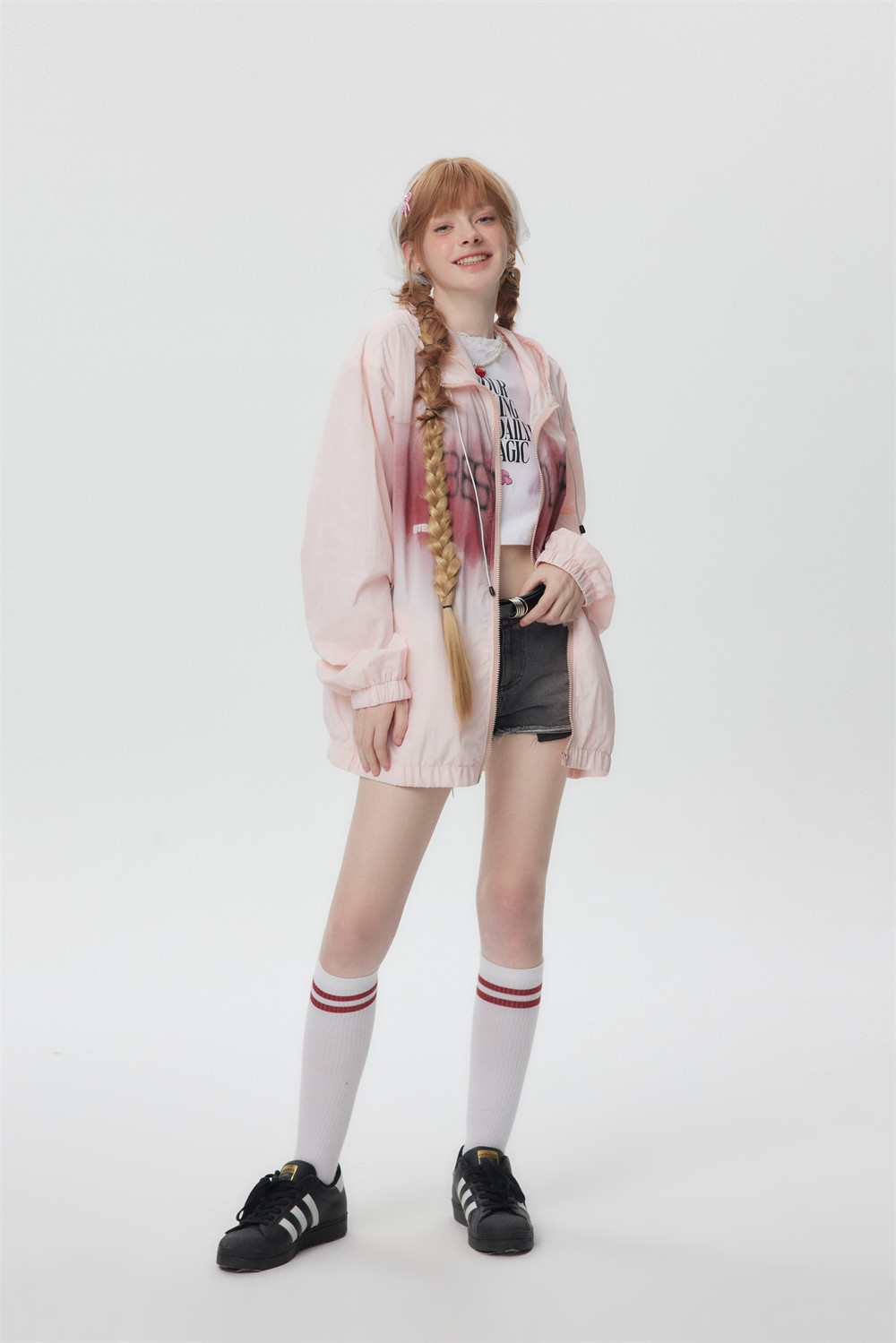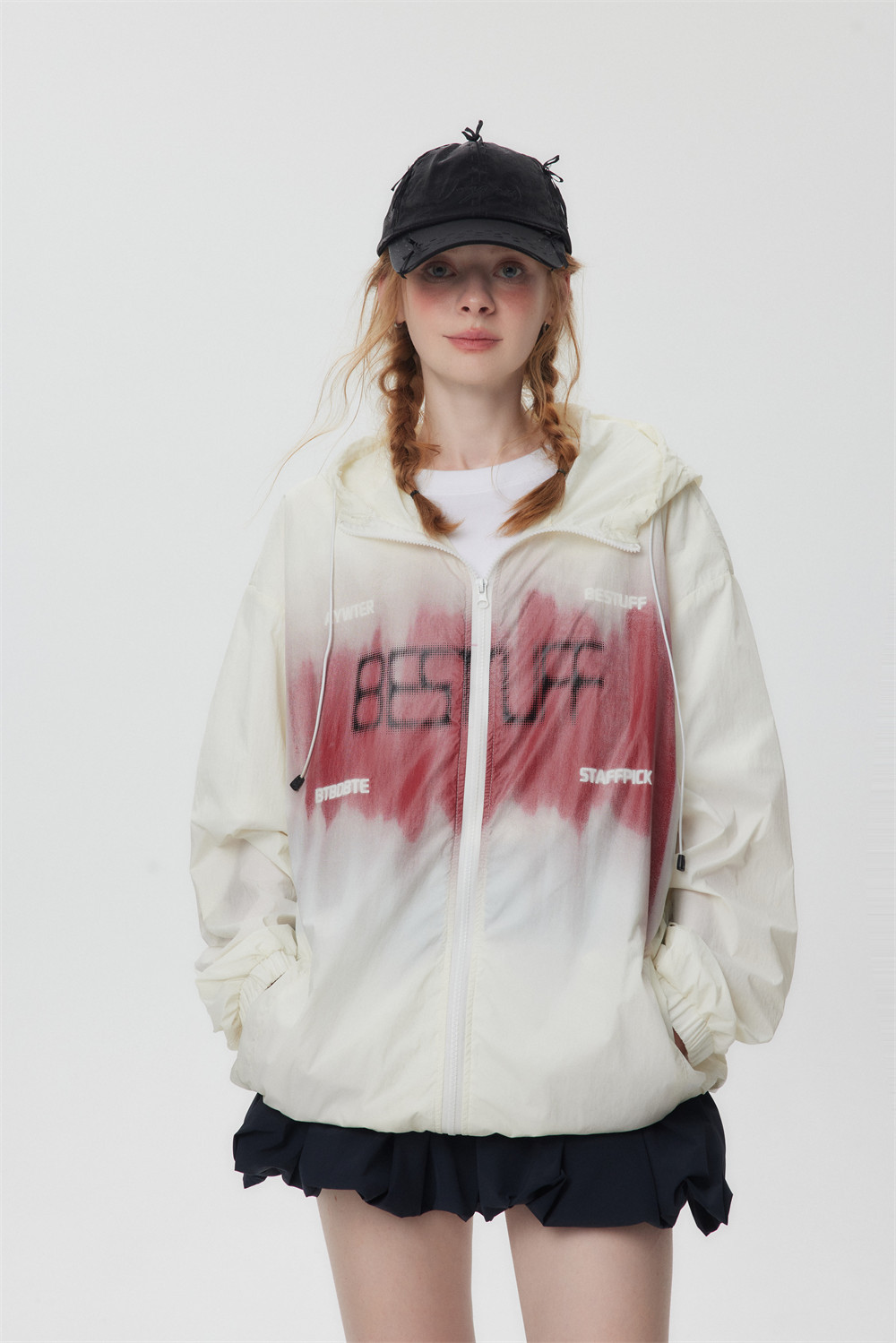 Women's Letter Printed Long Sleeve Hooded Sun-proof Top