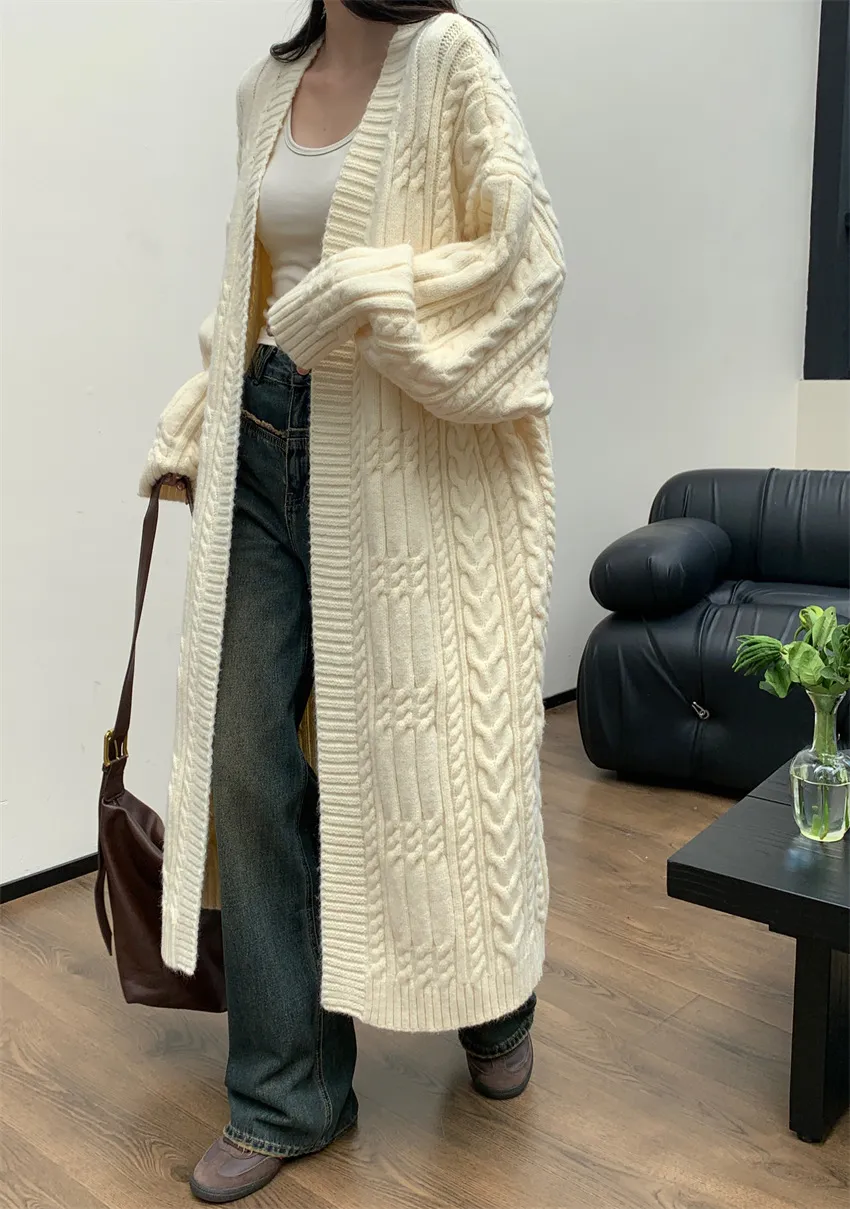 long sweater cardigan, thickened knitted coat, twist knit cardigan, women’s winter cardigan, cozy cardigan coat, open front cardigan, warm knitted cardigan, stylish sweater coat, long knit coat, women’s casual cardigan, winter layering cardigan