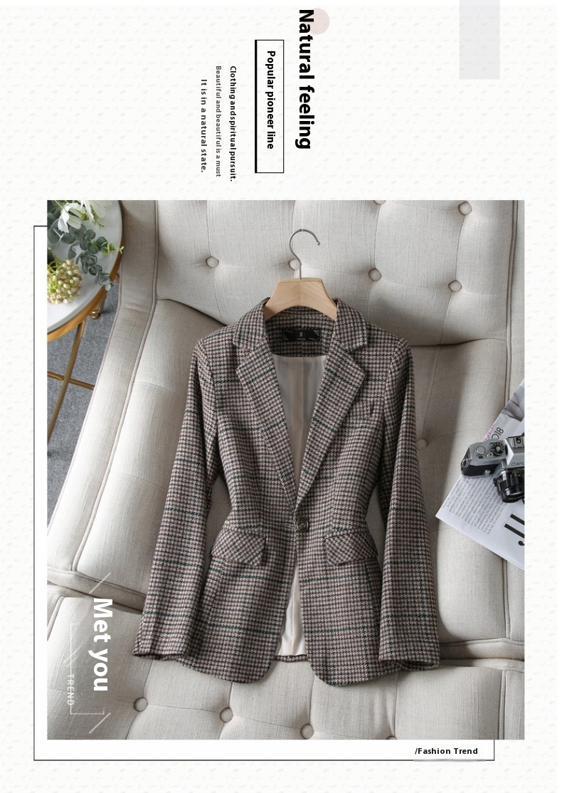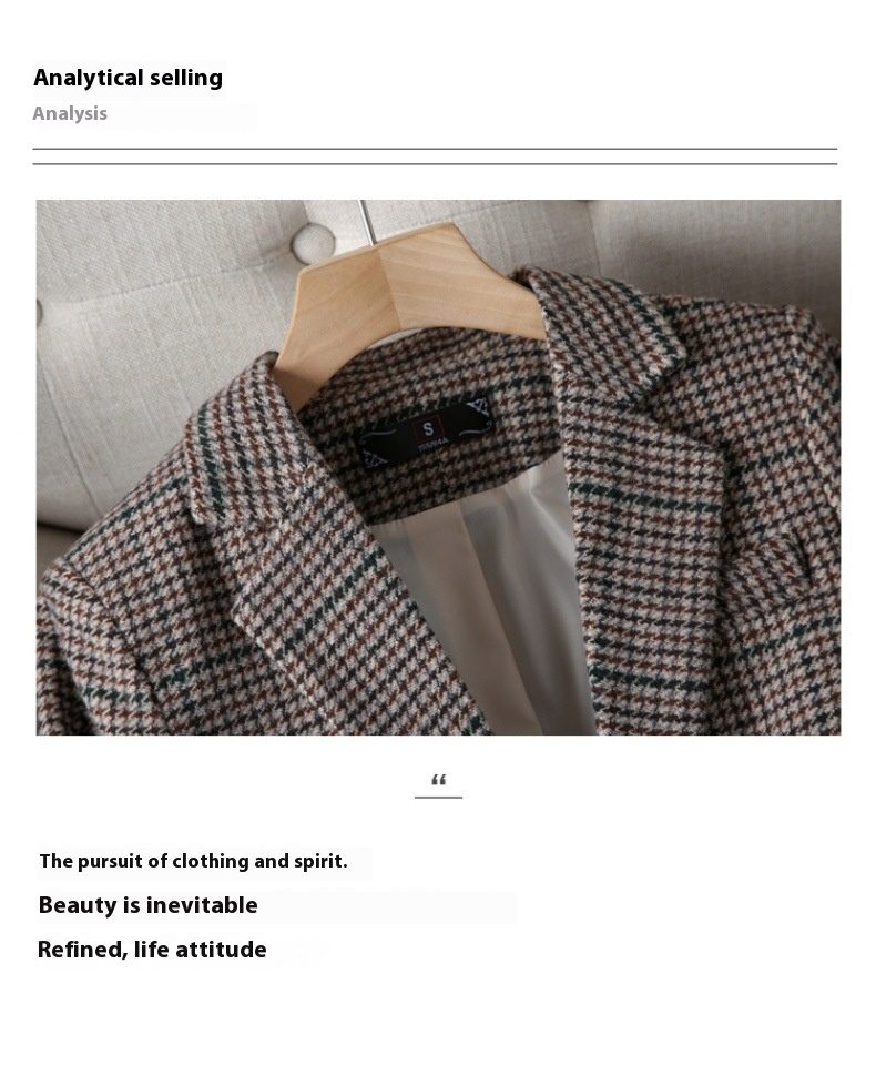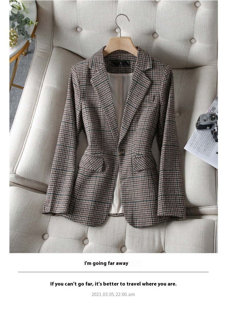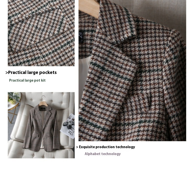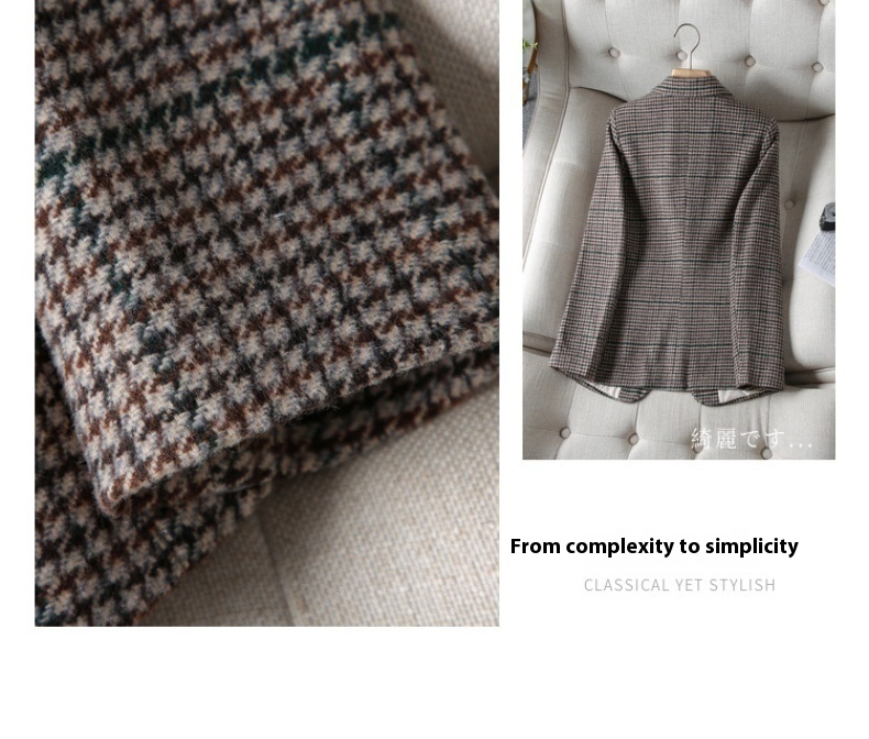Women's New Fashion Casual Houndstooth Suit Jacket