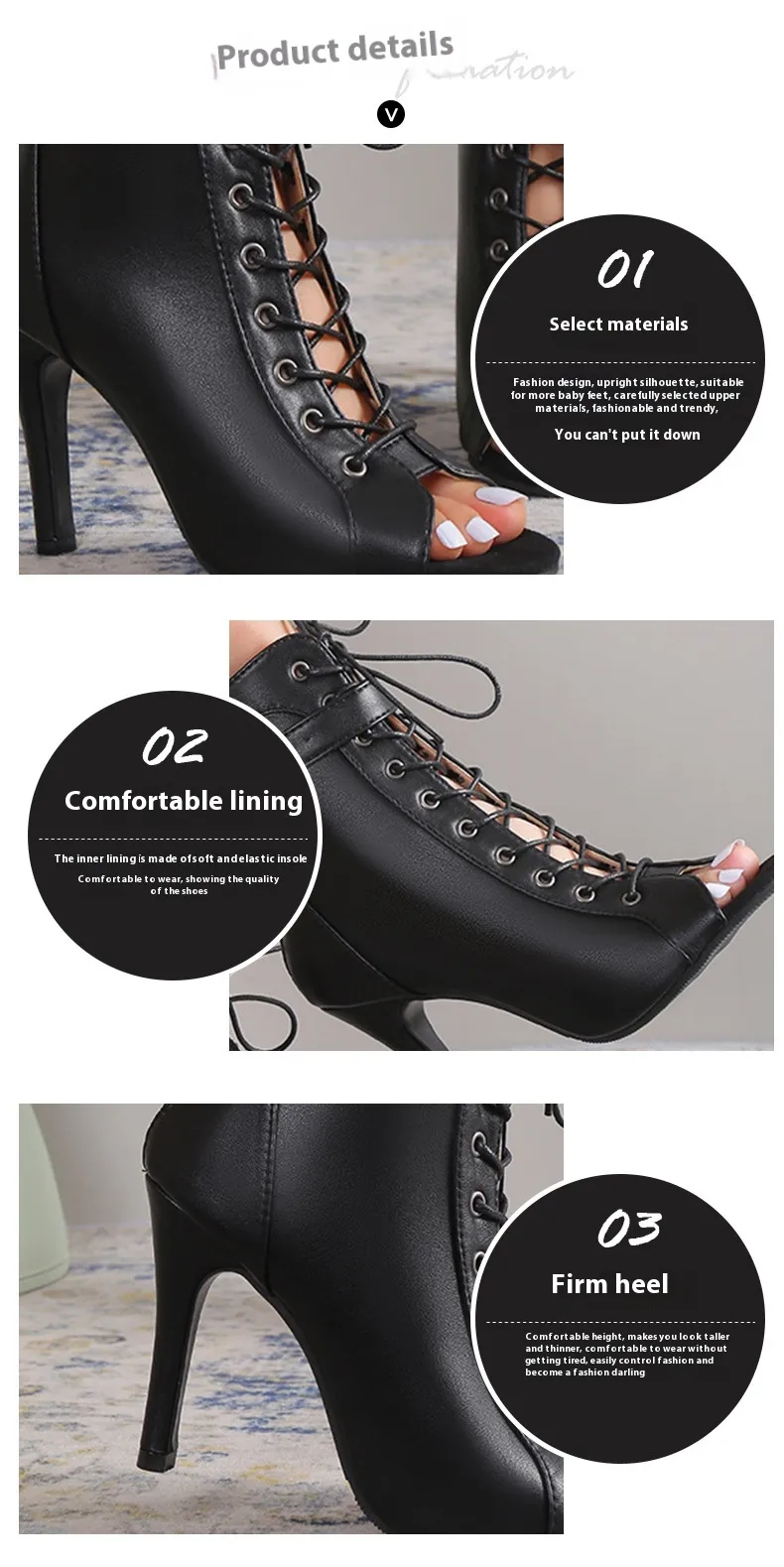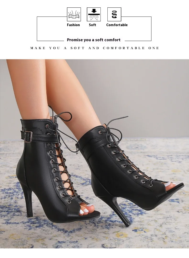 Women's Peep Toe High Heel Pumps Shoes Fashion Lace-up Buckle Sandals With Back Zipper Design