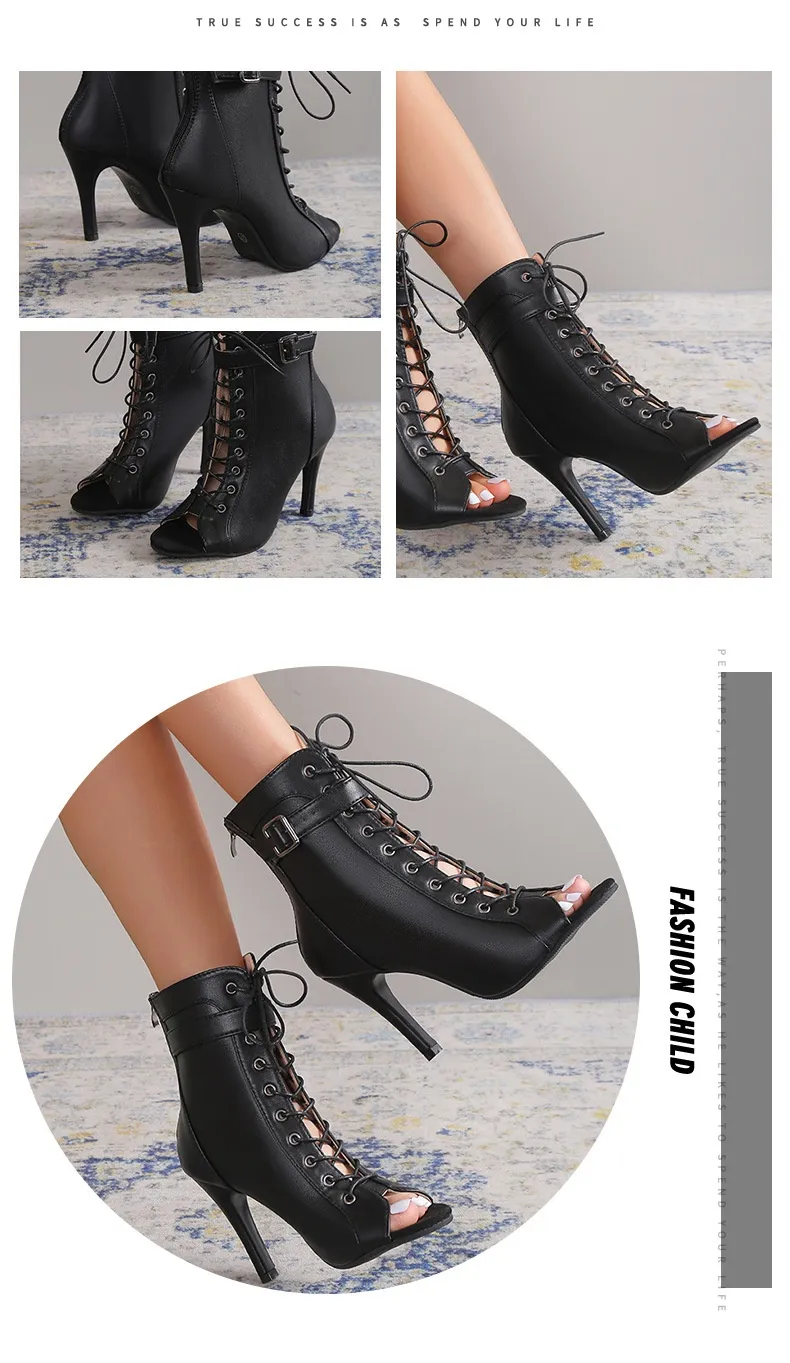 Women’s Peep Toe High Heel Pumps Shoes – Lace-up Buckle Sandals with Back Zipper Design