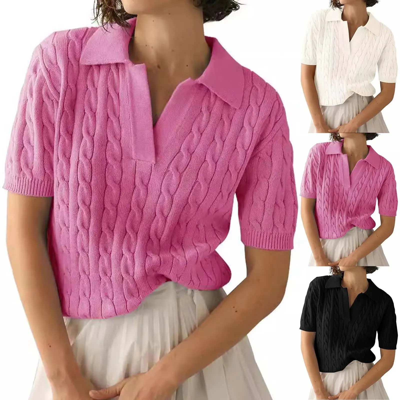 Women's Polo Collar Short-sleeved Knitted Sweater Casual Sweater