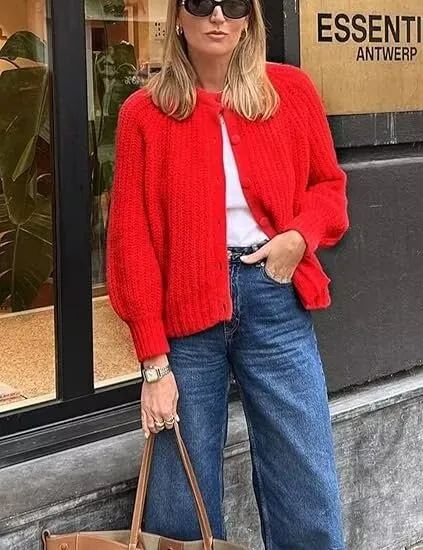 How to Style the Women's Puff Sleeve Knitted Cardigan Sweater