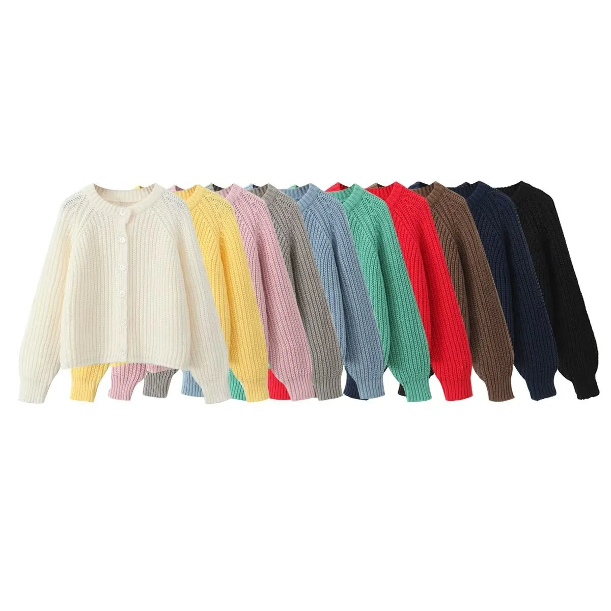 The Women's Puff Sleeve Knitted Cardigan Sweater is designed for those who love comfort and style in equal measure. This piece brings a timeless touch to your wardrobe with its flattering puff sleeves and soft, knitted fabric. Perfect for layering or wearing on its own, this cardigan is sure to become a staple in your cool-weather collection.