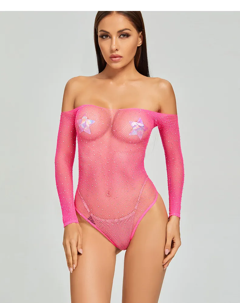 Crafted from high-quality materials, this bodysuit is designed to retain its sparkle and softness even after multiple washes. The durable construction ensures that the rhinestone detailing stays securely in place, and the mesh fabric maintains its shape. This durability makes it a great investment in your lingerie collection.