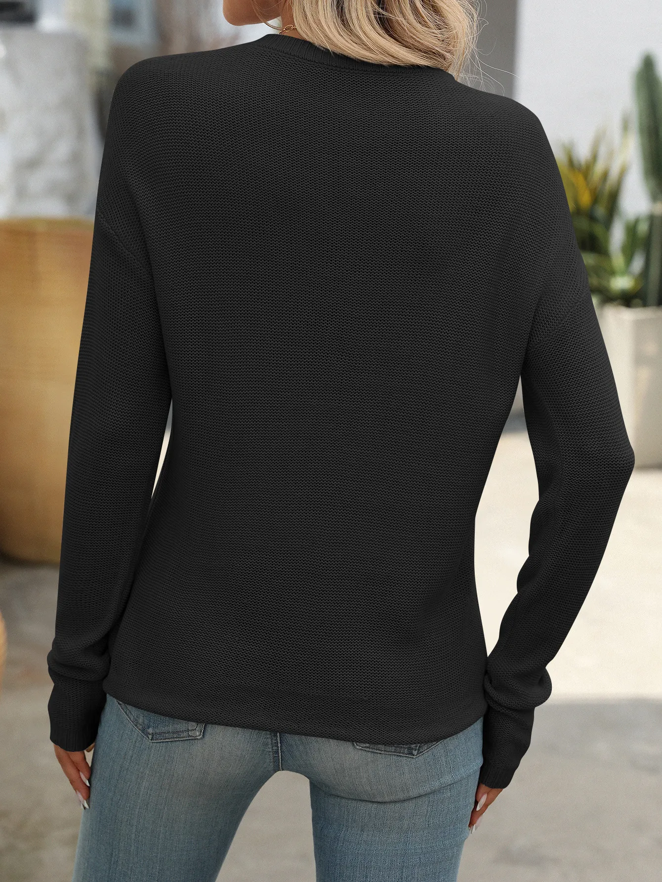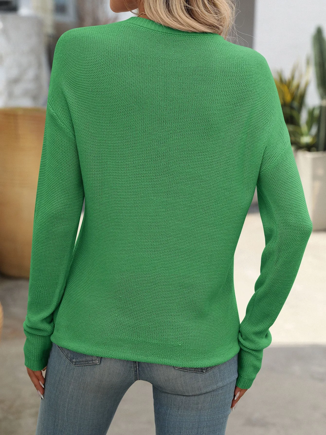 Women's Round Neck Long Sleeve Knitted Thick Needle Casual Sweater