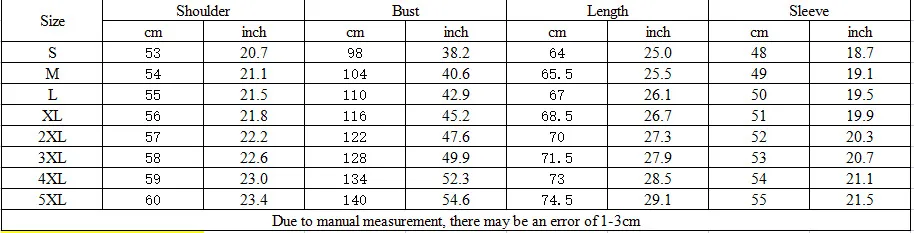 Size: S,M,L,XL,2XL,3XL,4XL,5XL