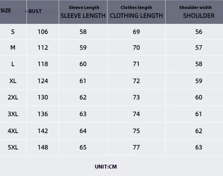 - Available Sizes: XS, S, M, L, XL, XXL