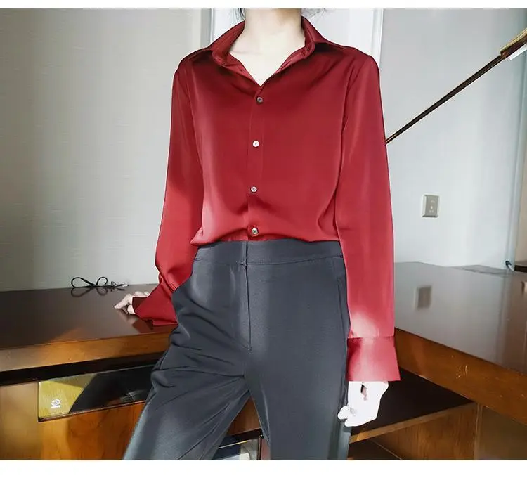 Women's Satin Spring And Autumn Long Sleeved Shirt