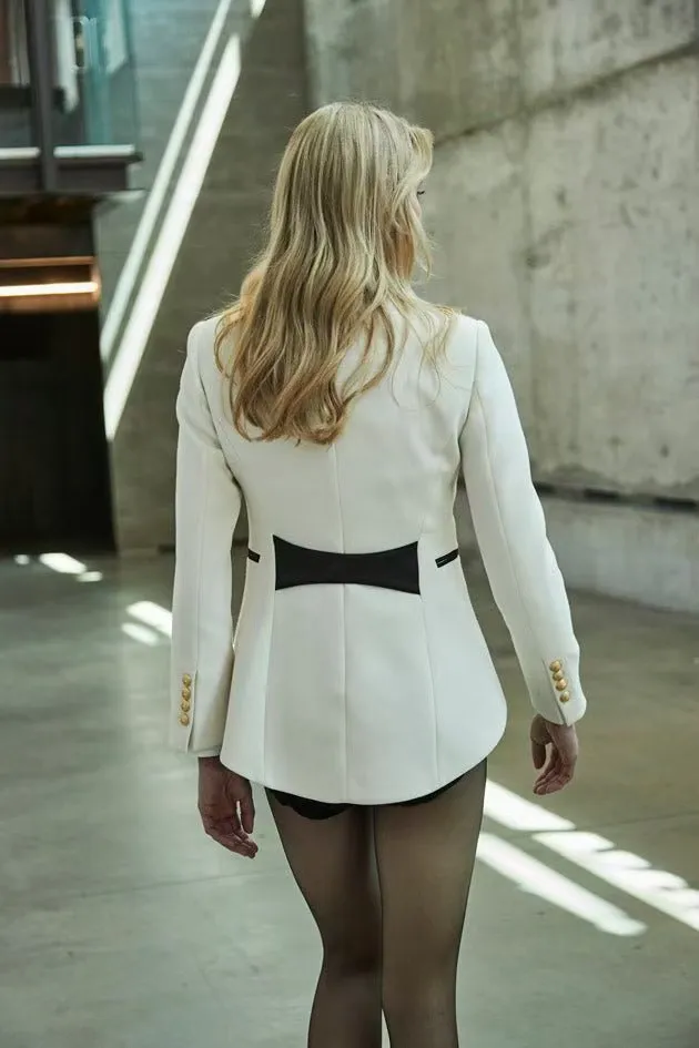 Elevate Your Wardrobe with the Women's Single-Breasted Printed Contrast Color Suit Coat
