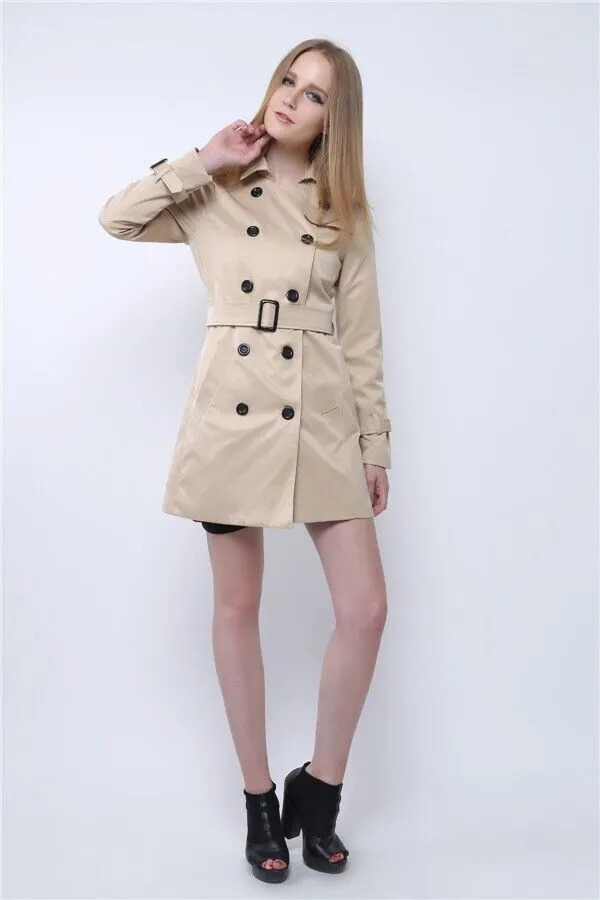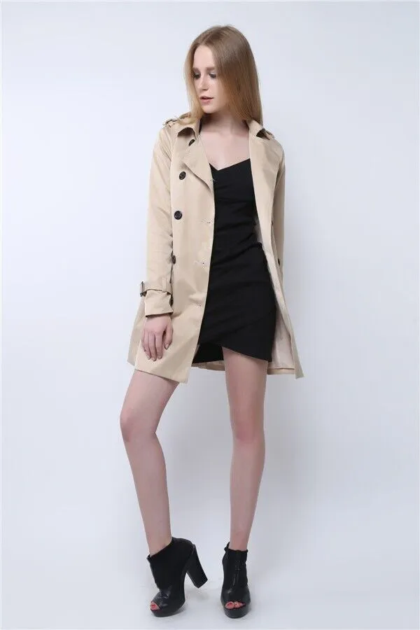 Features of the Women's Slim-fit Elegant Double-breasted Belt Trench Coat