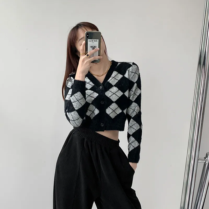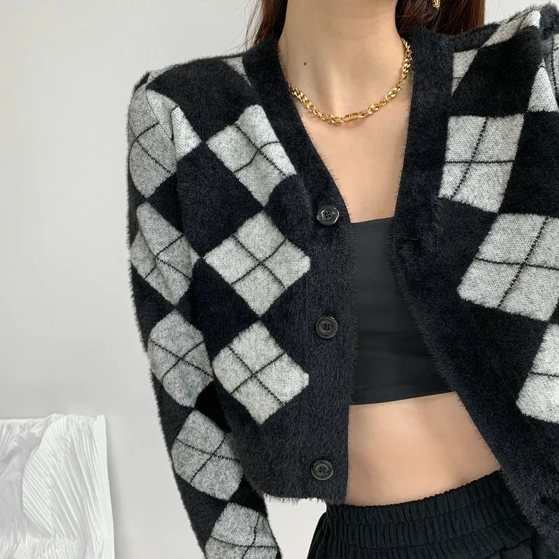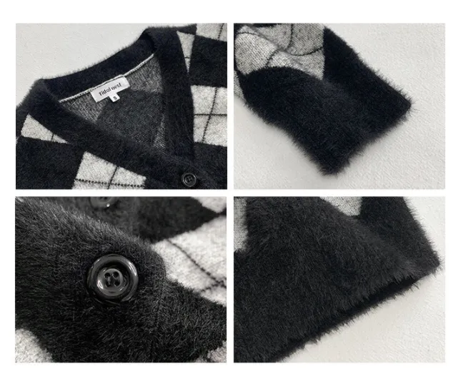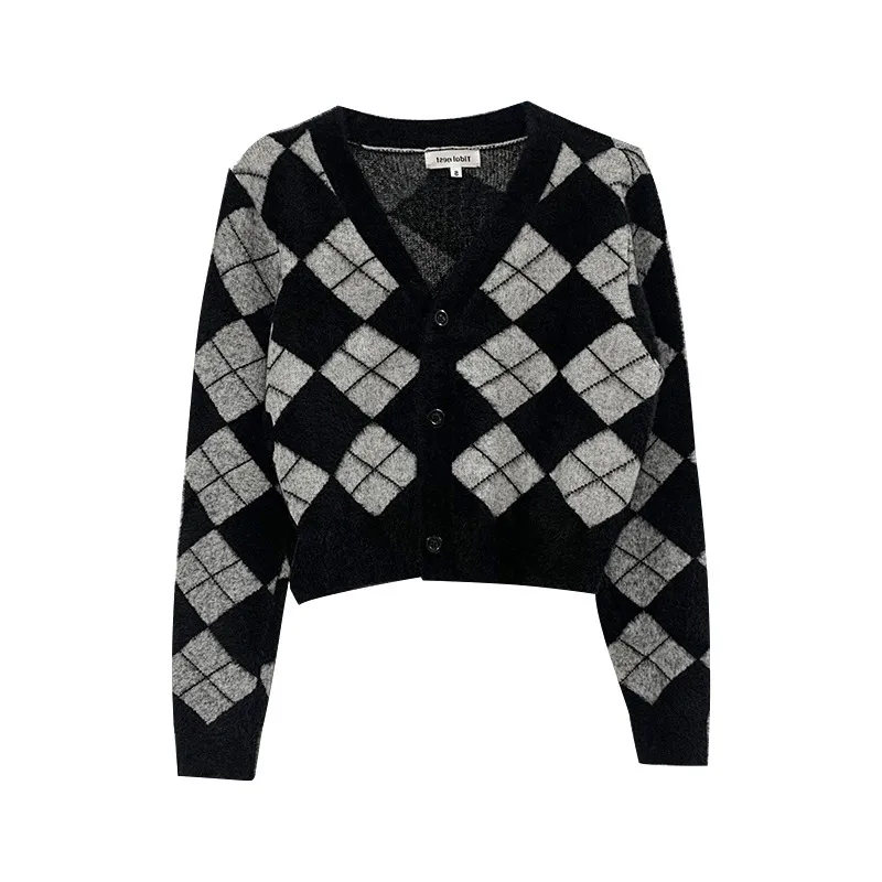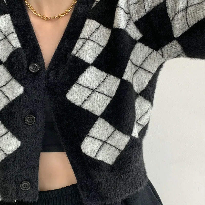 Women's Soft Waxy And Comfortable Rhombus Knitted Cardigan