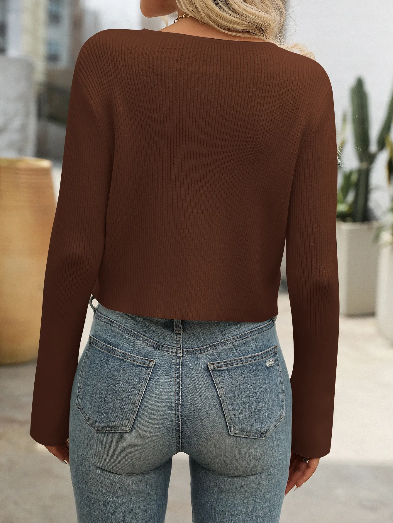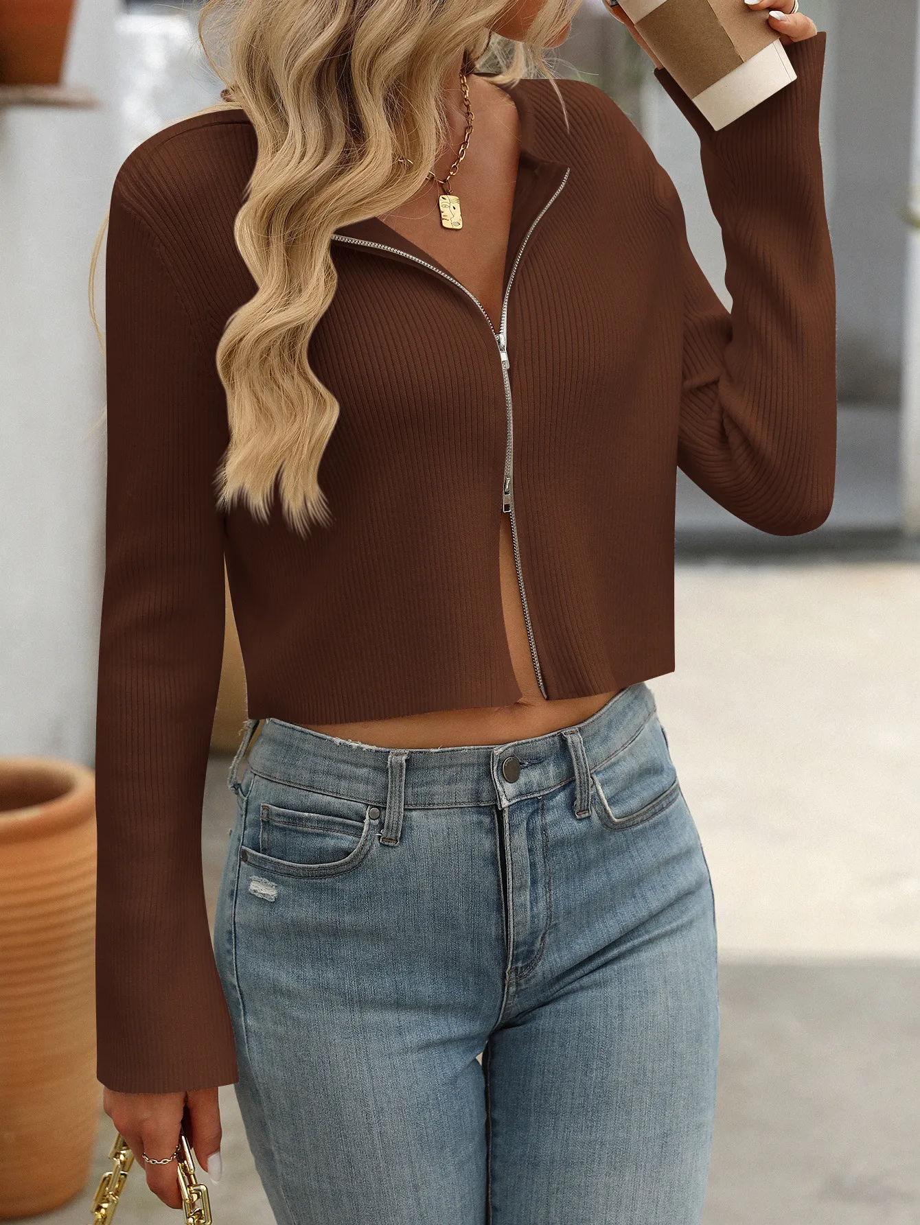 Women's Solid Color Long Sleeve Zipper Cardigan Sweater