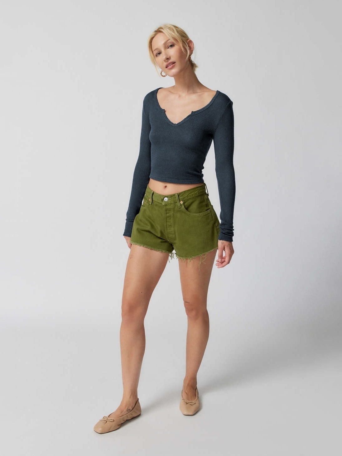 Women's Solid Color Ribbed Slim T-shirt V-neck