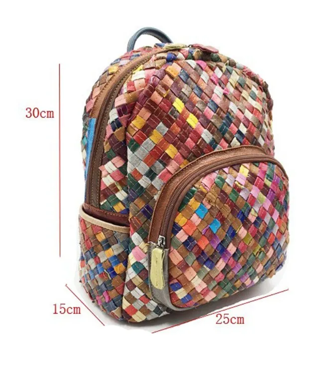 functionality. Featuring intricate hand-woven cowhide leather and a bold color-stitching design, this backpack is perfect for women who