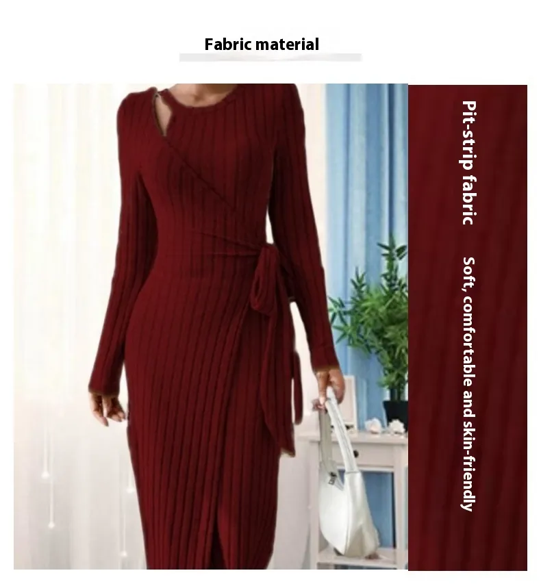 The Women's Striped Fashion Round Neck Long Sleeve Narrow Bow Dress is a versatile addition to any wardrobe. Its classic design, combined with modern details, makes it suitable for various occasions. Whether you're dressing up for work or going out for a casual day, this dress ensures you look your best.