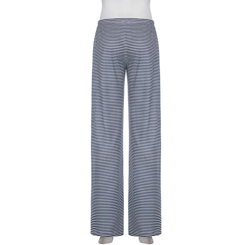 Women's Striped Print Trousers Y2K Fashion Casual Lace Up Home Straight Wide-leg Pants