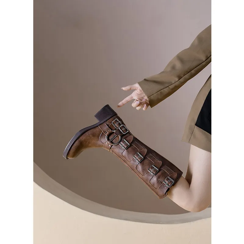 Women's Summer Belt Buckle Chunky Heel Martin Boots
