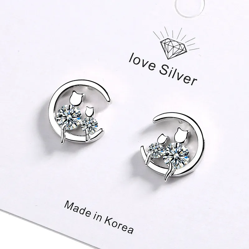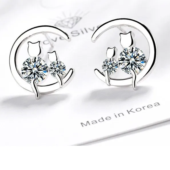Women's Sweet Single Diamond Cat Ear Studs