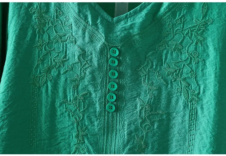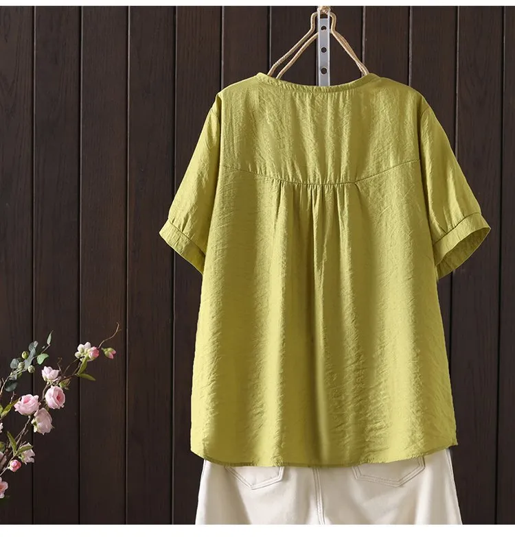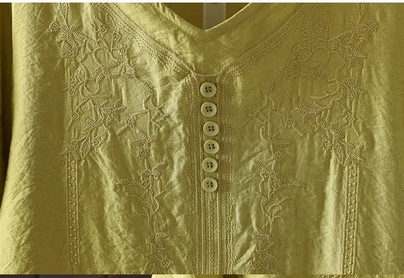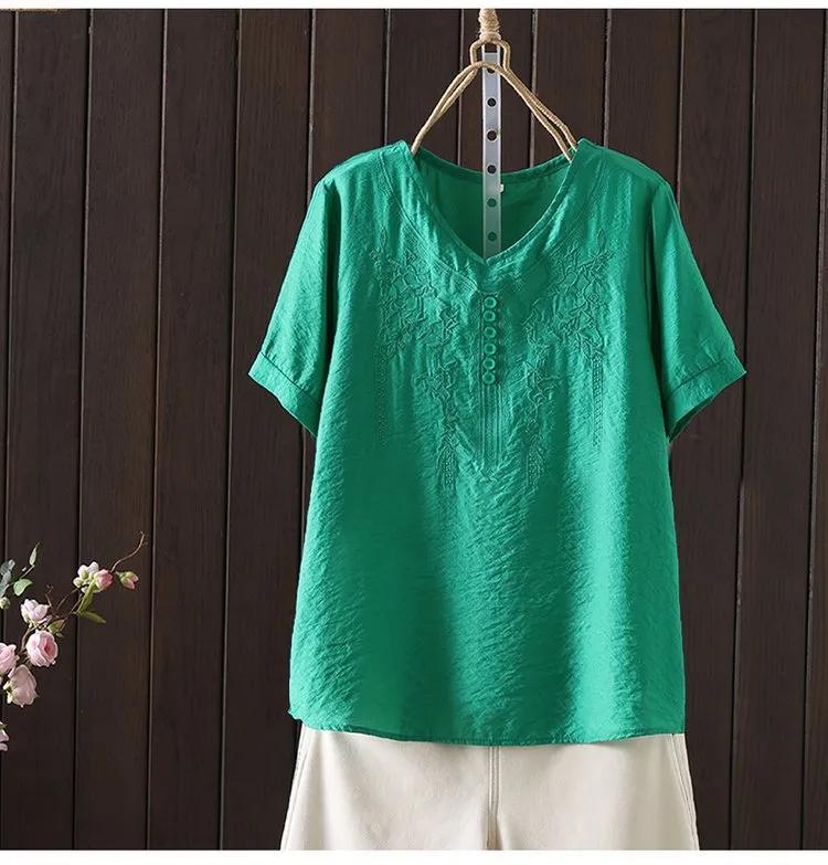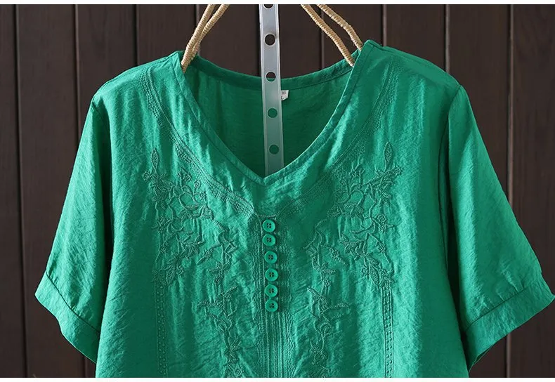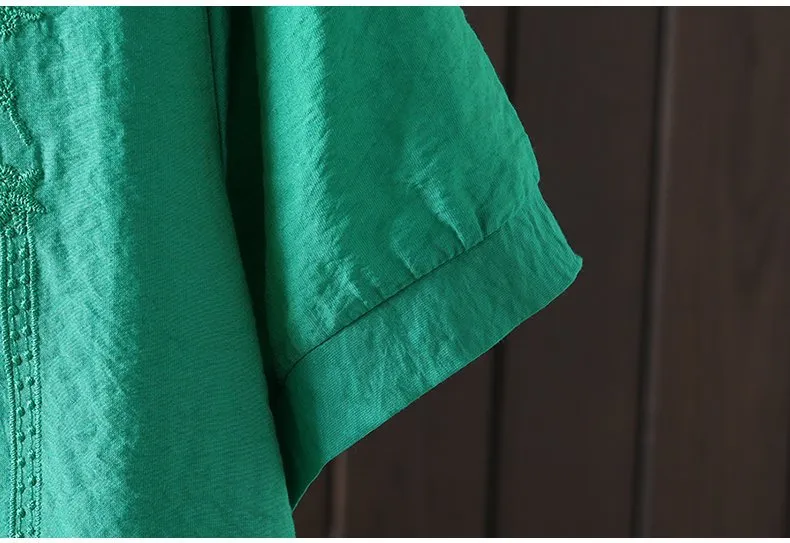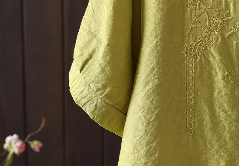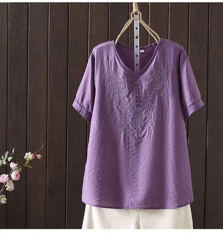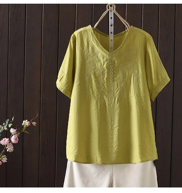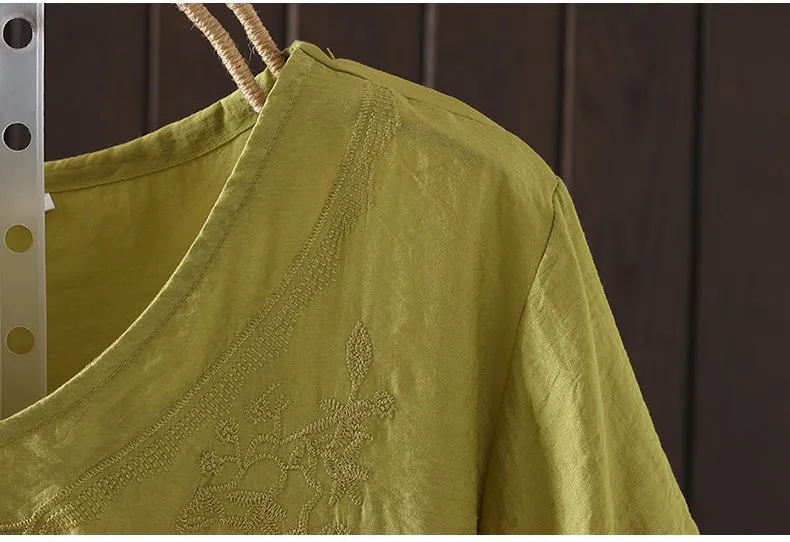 Women's Cotton and Linen Embroidery Loose T-shirt