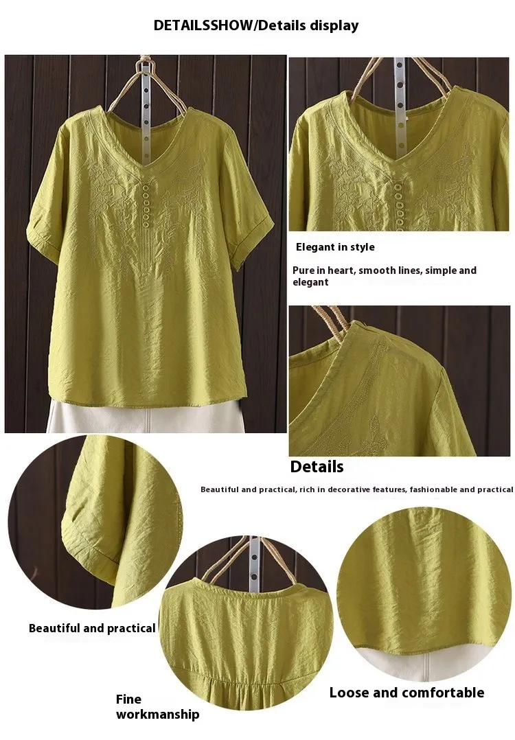 Women's T-shirt Cotton And Linen Embroidery Loose Fashion