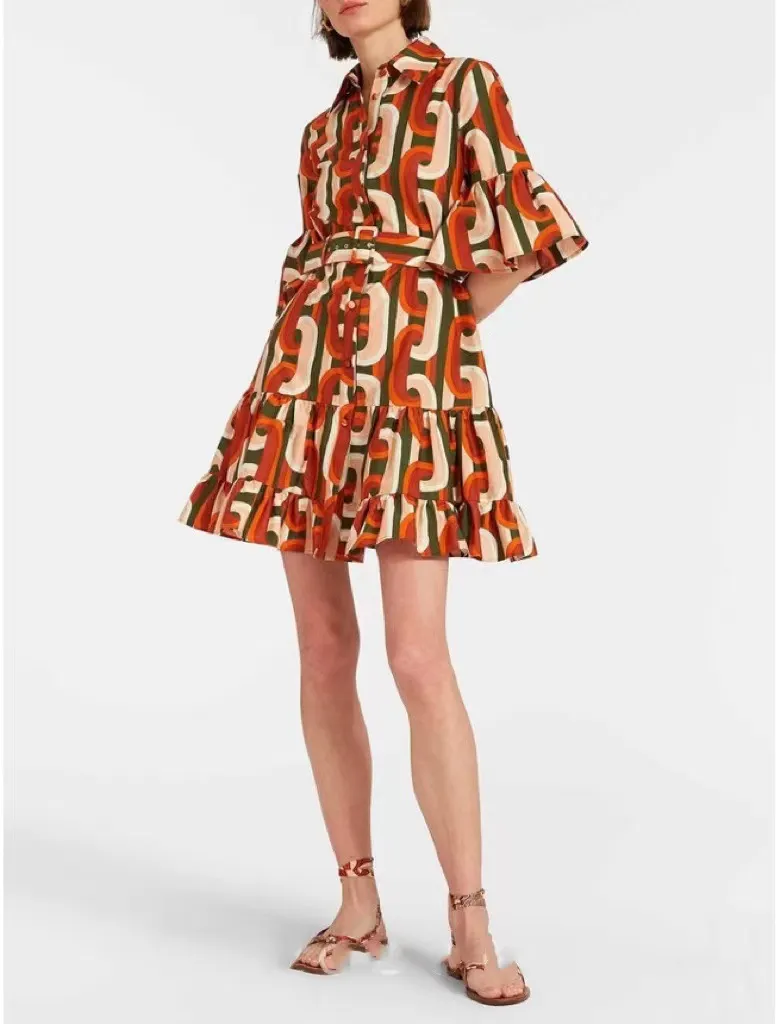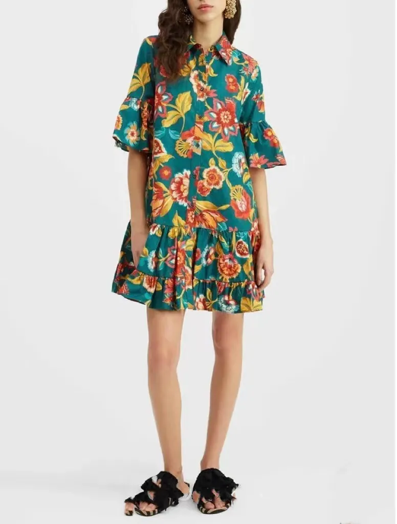 The vibrant printed pattern adds a playful yet elegant touch, allowing you to stand out with minimal effort. Crafted from soft, lightweight fabric, this dress keeps you cool and comfortable throughout the day, whether you’re enjoying a casual lunch, shopping, or a stroll in the park.