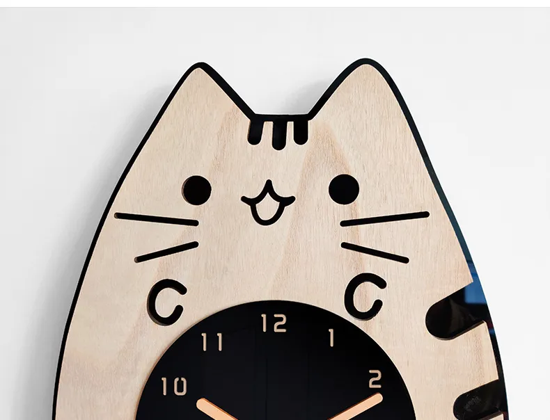Wood Cartoon Clock Home Decor: Adorable Cat with Wagging Tail for Your Living Room