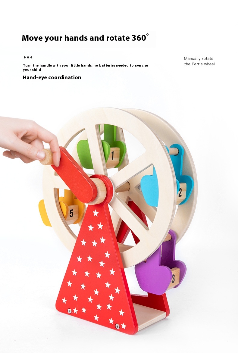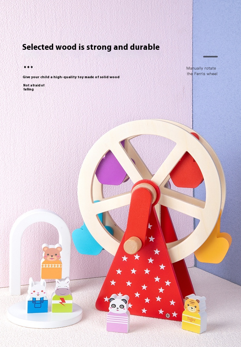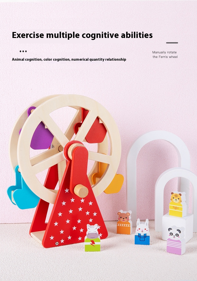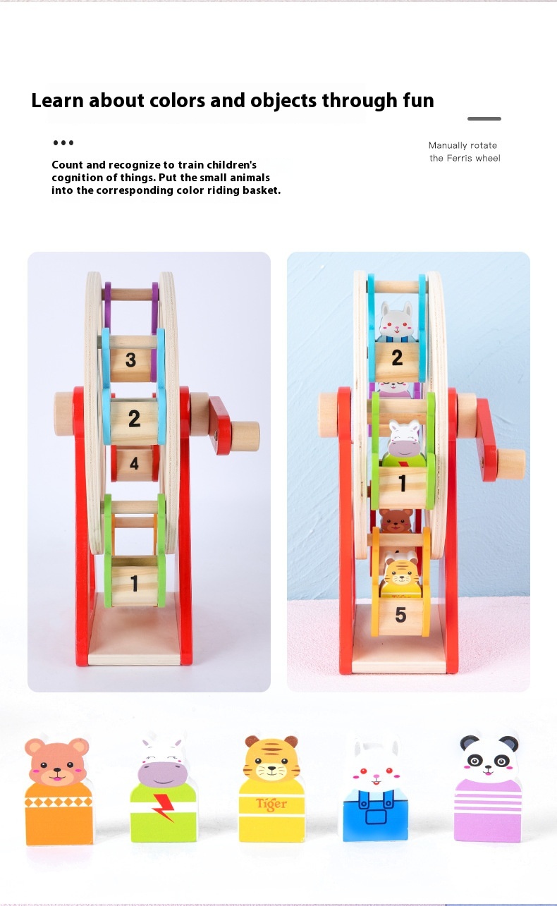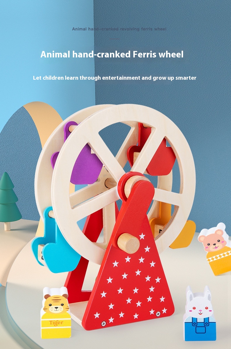 The Wooden Animal Hand Ferris Wheel is an enchanting educational toy that combines fun and learning. Its sturdy construction, interactive